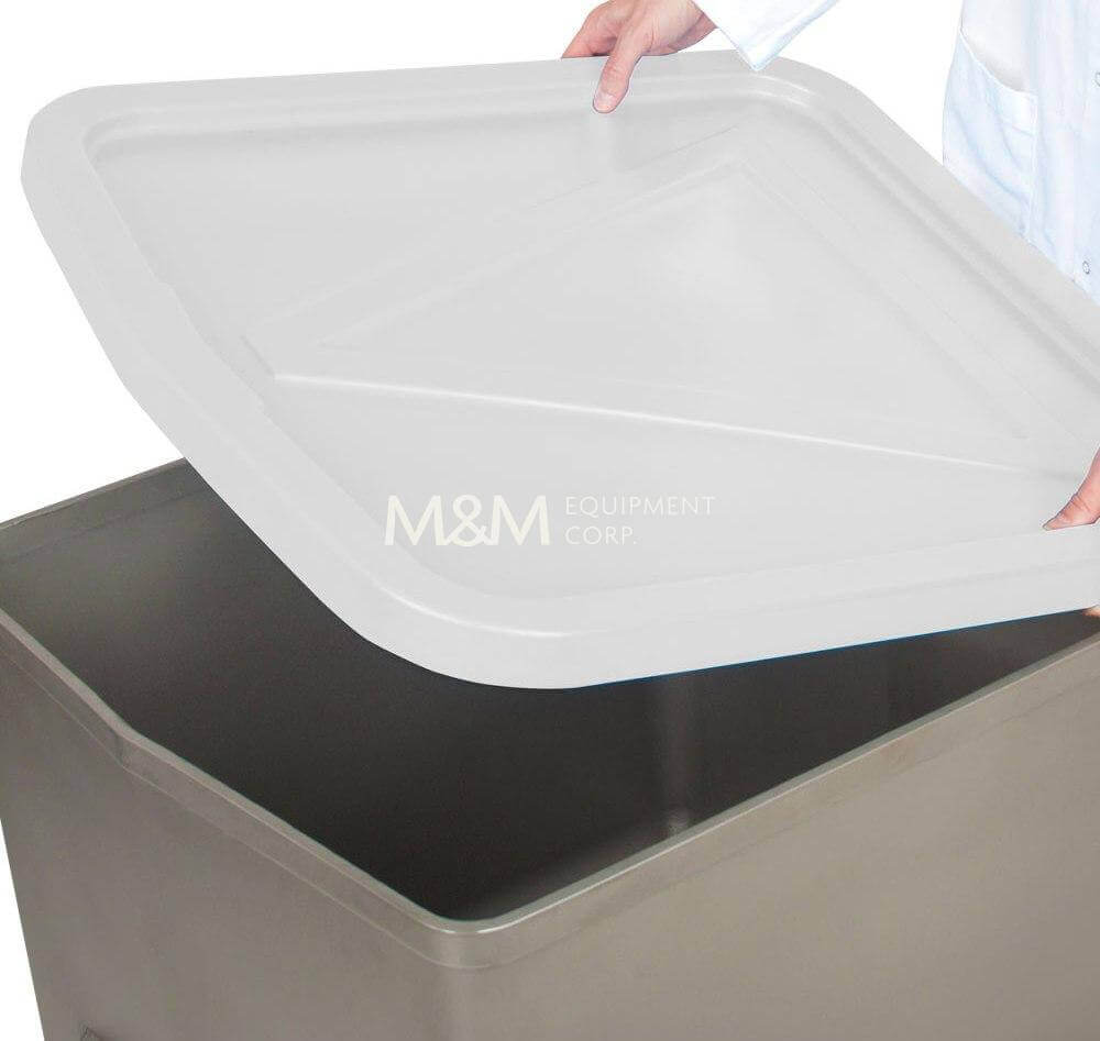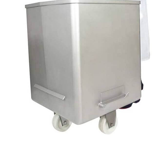 600 lbs. Capacity dump buggy, smooth, easy-to-clean interior, reinforced top rim, 14-gauge 304 stainless steel top portion and 11-gauge stainless steel bottom with cross braces for additional strength, (4) 6″ X 1-1/2″ poly wheels, stainless steel axles & nut. Dimensions: 26″ L x 28″ W x 30″ D.