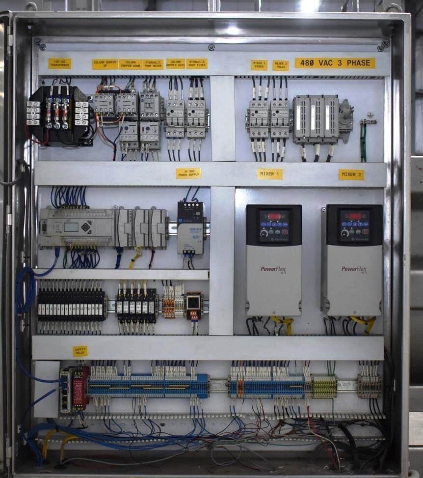 A-One dual Shaft Paddle Blender. 2,000 Lbs. Hopper capacity. Equipped with (2) 10HP drive motors, 1735 RPM, 230/440V/3PH/60HZ. Nord Gear boxes. Dual end pneumatic discharge doors, Jacketed Bottom shell jacketed, National Board No. 649, MAWP 100 PSI @ 250 F., Control panel with Allen Bradley Micrologix 1400 PLC, (2) A/B Powerflex 40 VFD’s. Stainless steel construction.