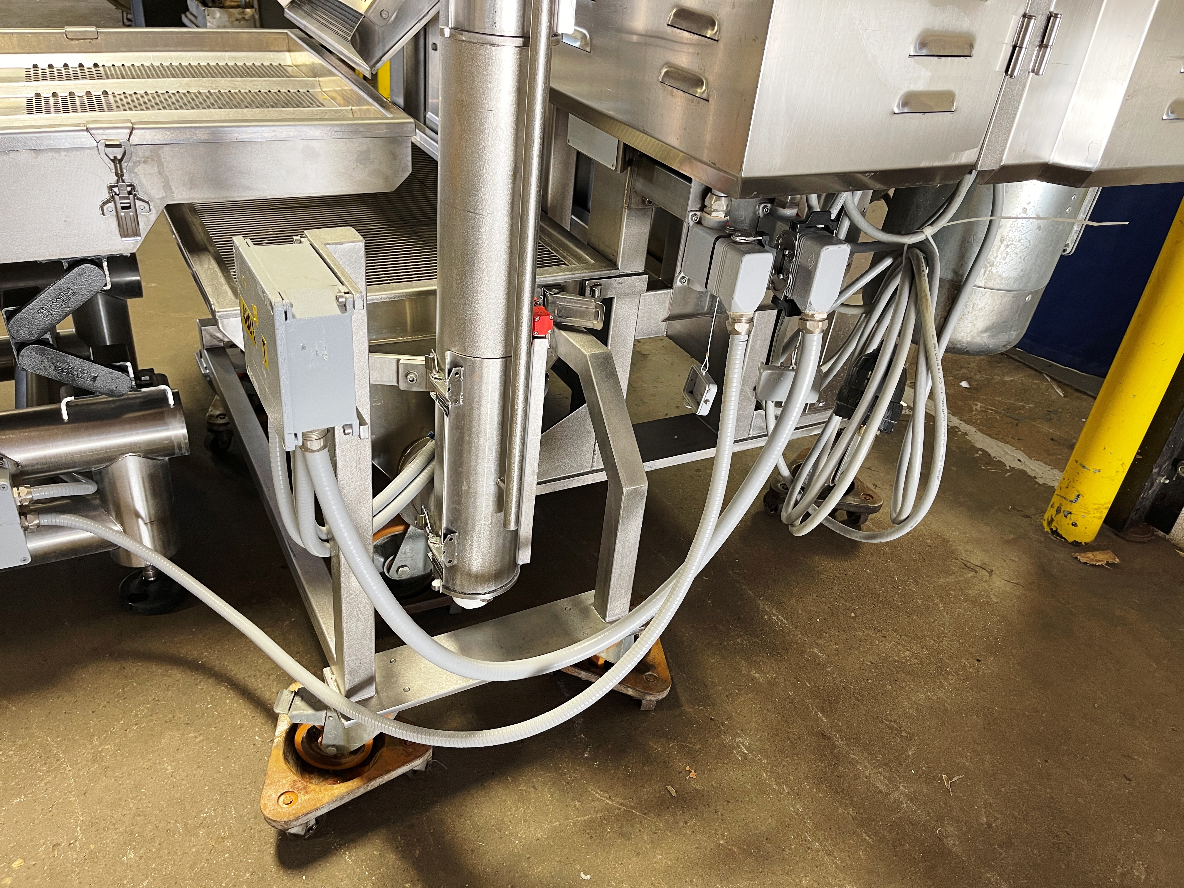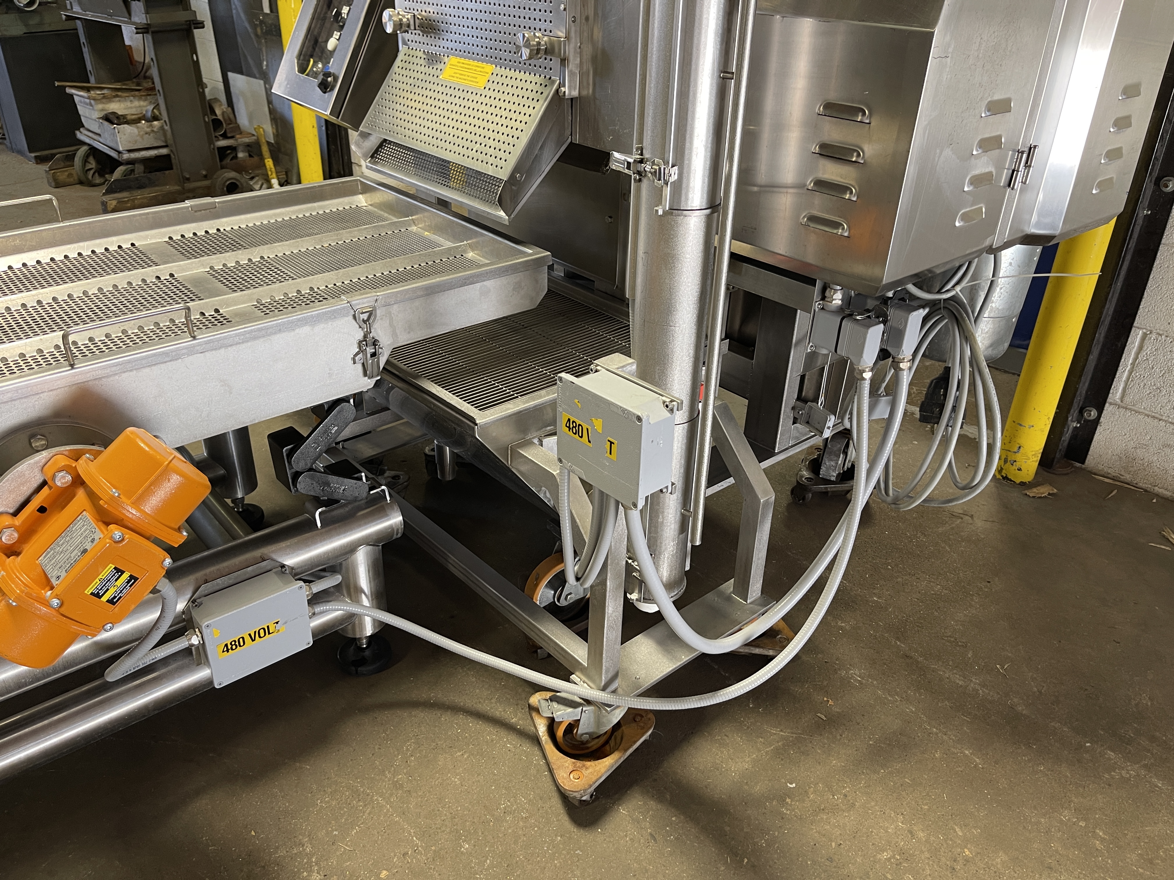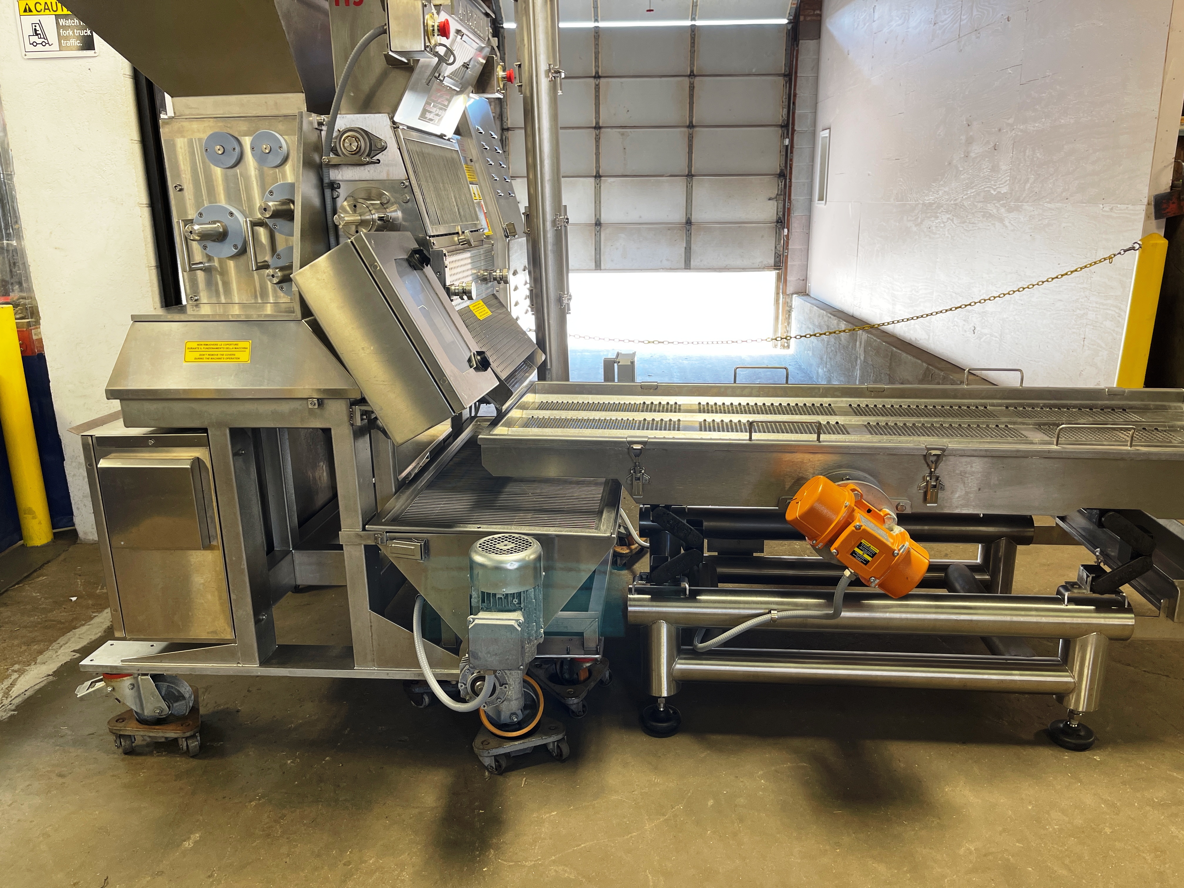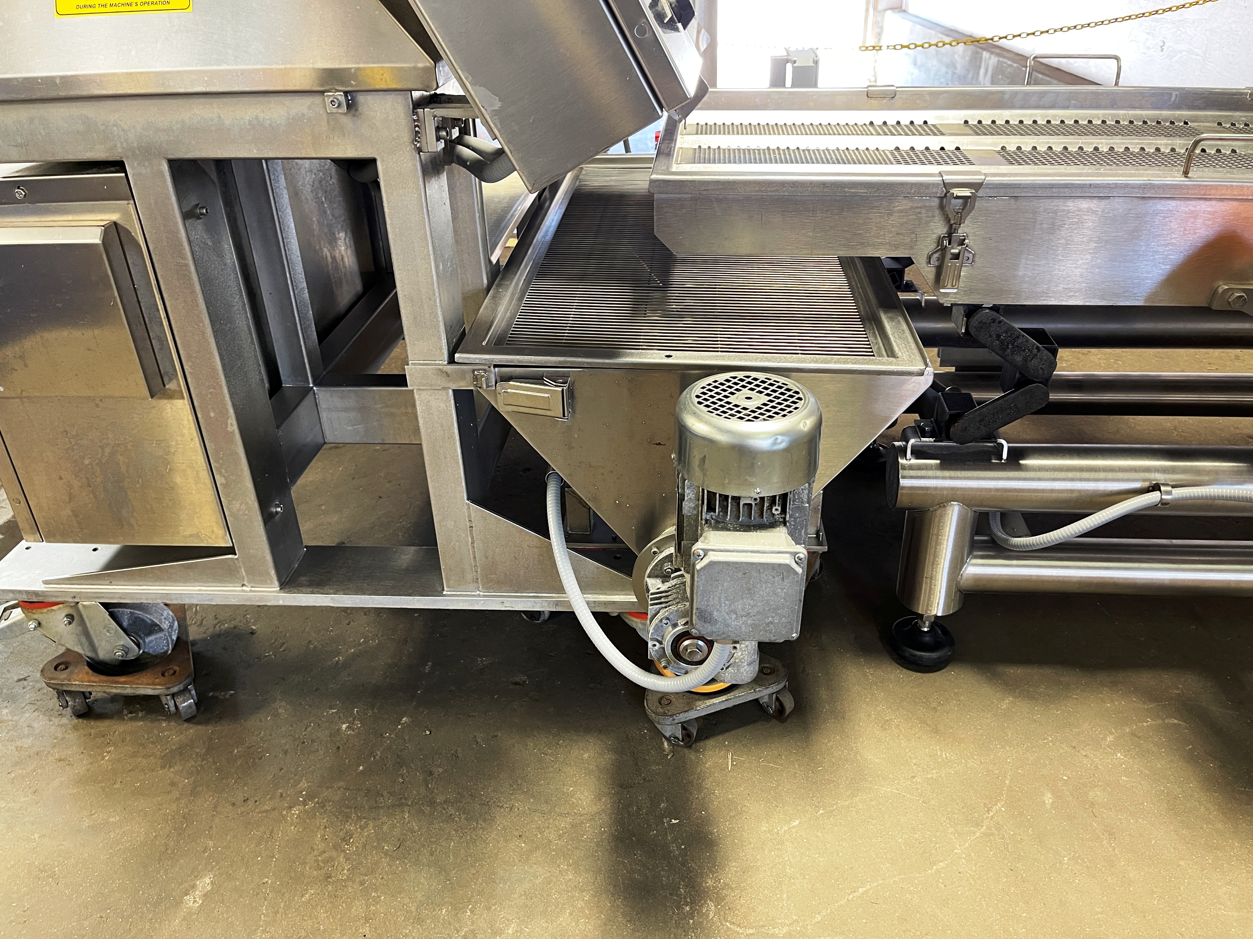 AGNELLI Gnocchi Former. Agnelli Automatic Gnocchi Former. Designed for the production of Dumplings and Gnocchi. Includes 12 hole former which produces 500 Kg/hour, Recirculating return hopper, 19″ x 39″ hopper, 6″ dia. return auger and Vibratory discharge conveyor, 25″ x 74″ perforated pan with dual vibration motors. 480V/3Ph/60HZ