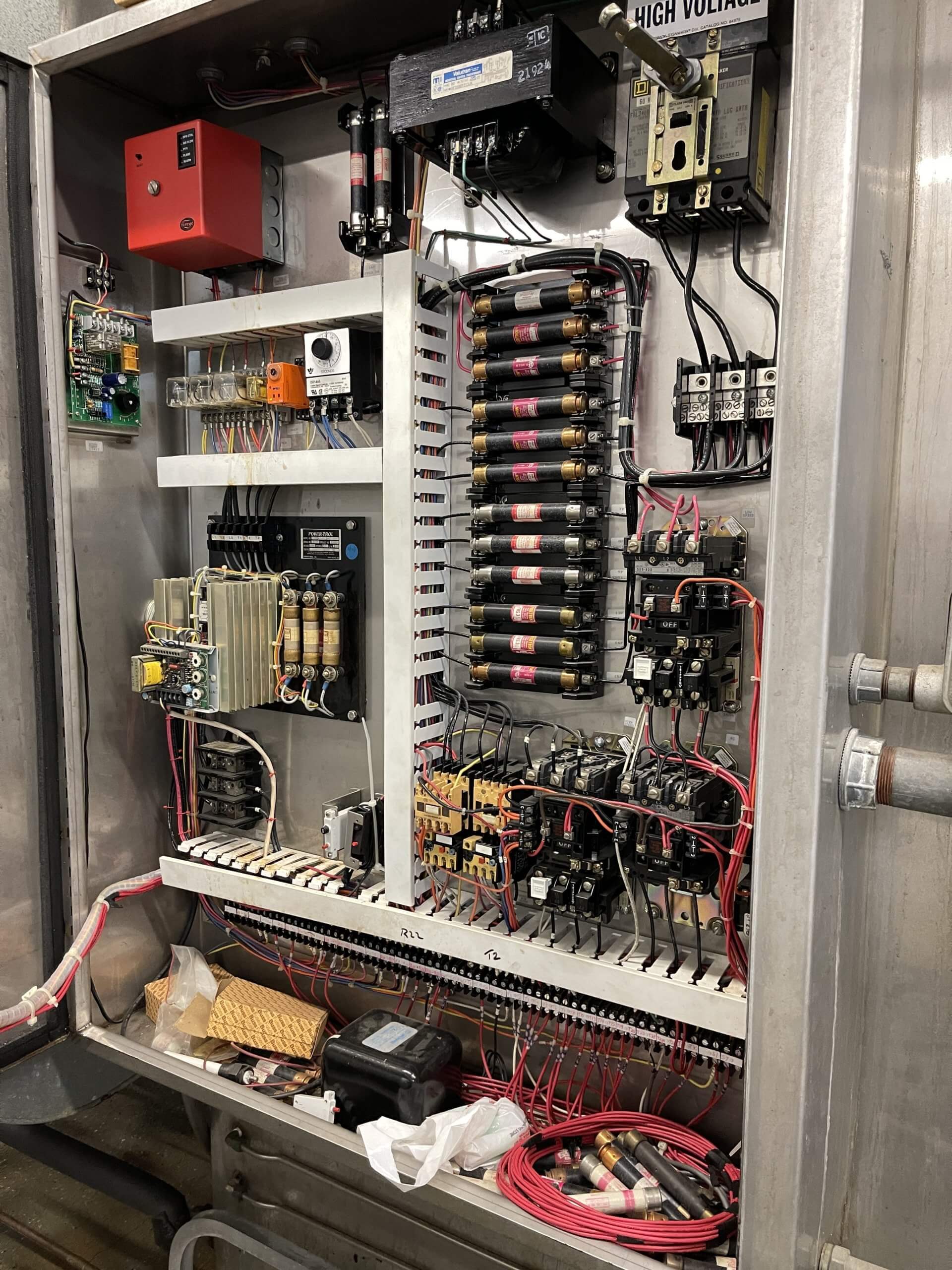 ALKAR 2000 Smokehouse. Alkar Two Gas Fired Truck Smokehouse. All stainless steel construction. ID: 44″ W X 8′ L, OD: 62″ W X 14′ L X 102″ T. Includes (2) 44″ x 44″ x 75″ Smokehouse Trucks, Zesti Smoke liquid smoke system, Alkar DDC Flame Control Panel with Microprocessor. Natural gas-fired, Rear mounted Maxon 405 gas burner. 5 hp blower motor fan, 460V/3PH/60HZ, 43.5 Amps.