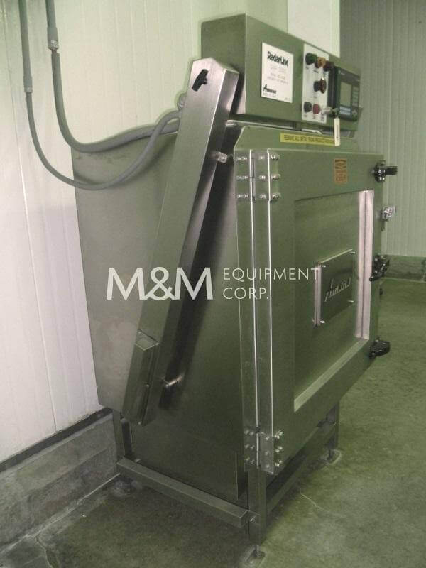 Amana batch microwave, stainless steel construction, Power output 15-40kW, 915 MHz, Oven cavity dimension 28″ x 36″ x 32″, capacity up to 1500#/hr.  480V/3PH/60HZ, 70 Amps, 103kVA.