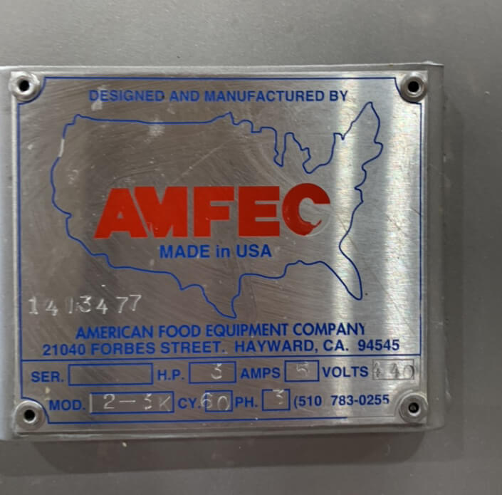 AMFEC 2-3K Cart Lift. Portable Tote Dumper. 800 Pound lift capacity, Left hand dump facing load area. Stainless steel construction. 11′ tall Overall Height. Adjustable Dump Height 68″ to 96″. Chain Driven, 230V/3Ph/60Hz.