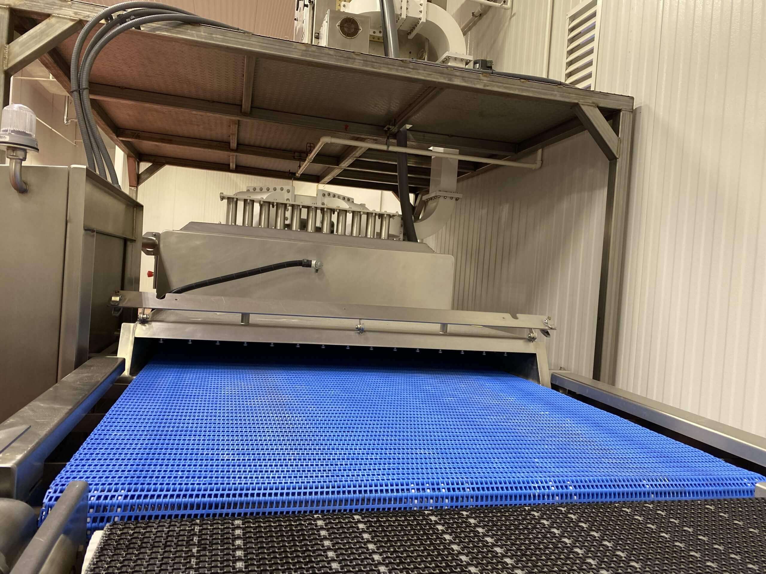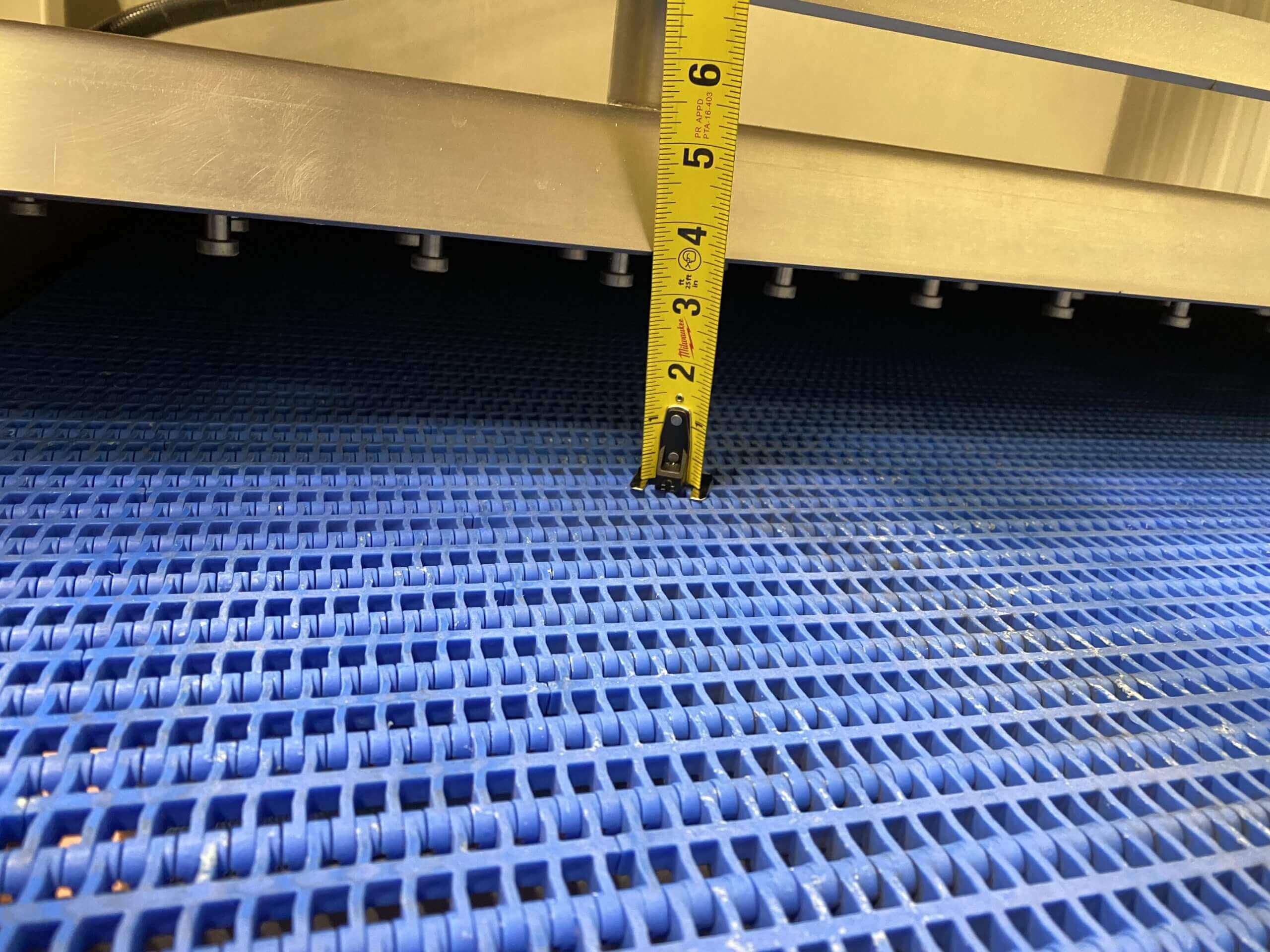 Amtek Microwave Cooking System. 36″ wide X 23′ long plastic conveyor bel...