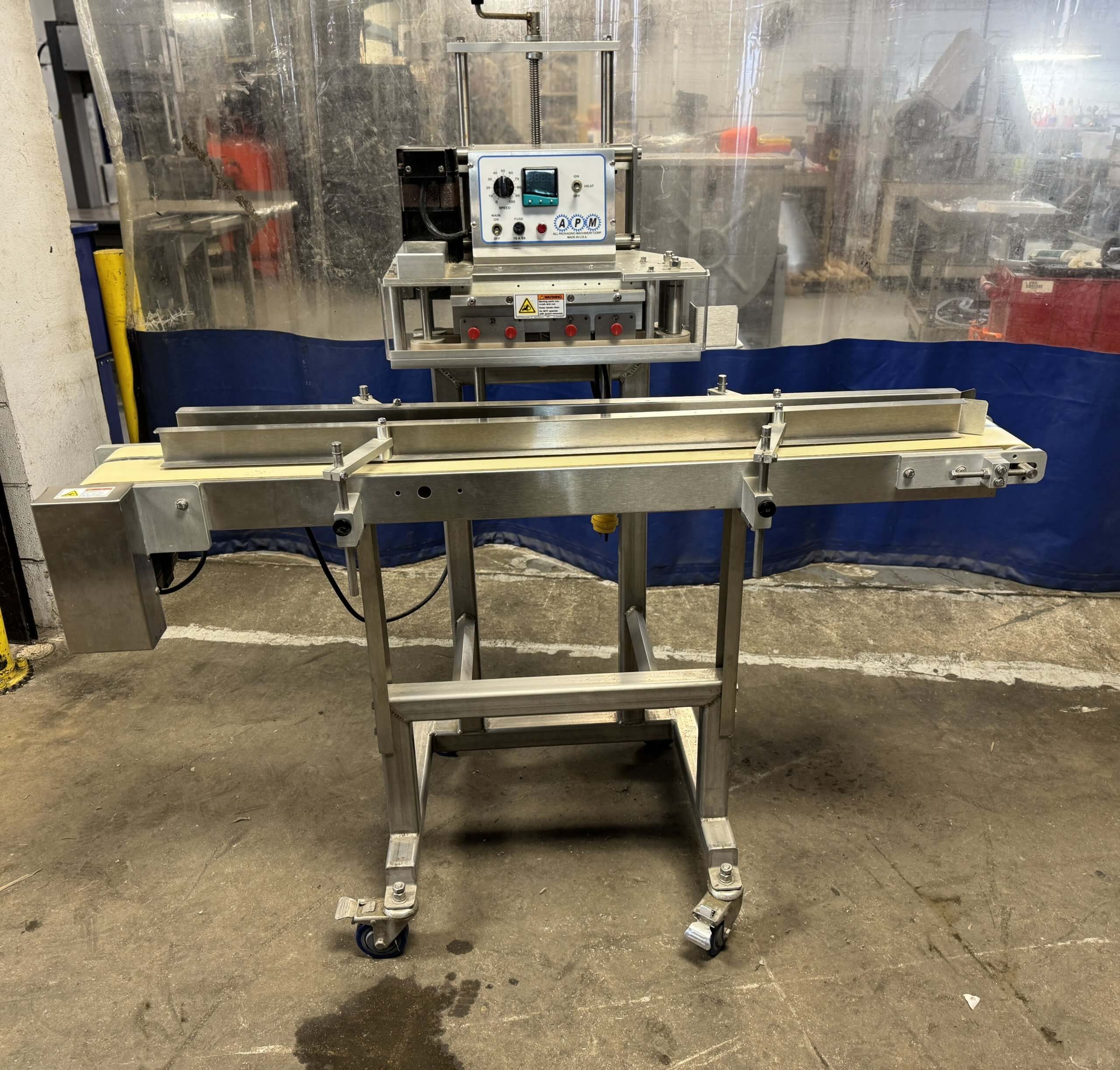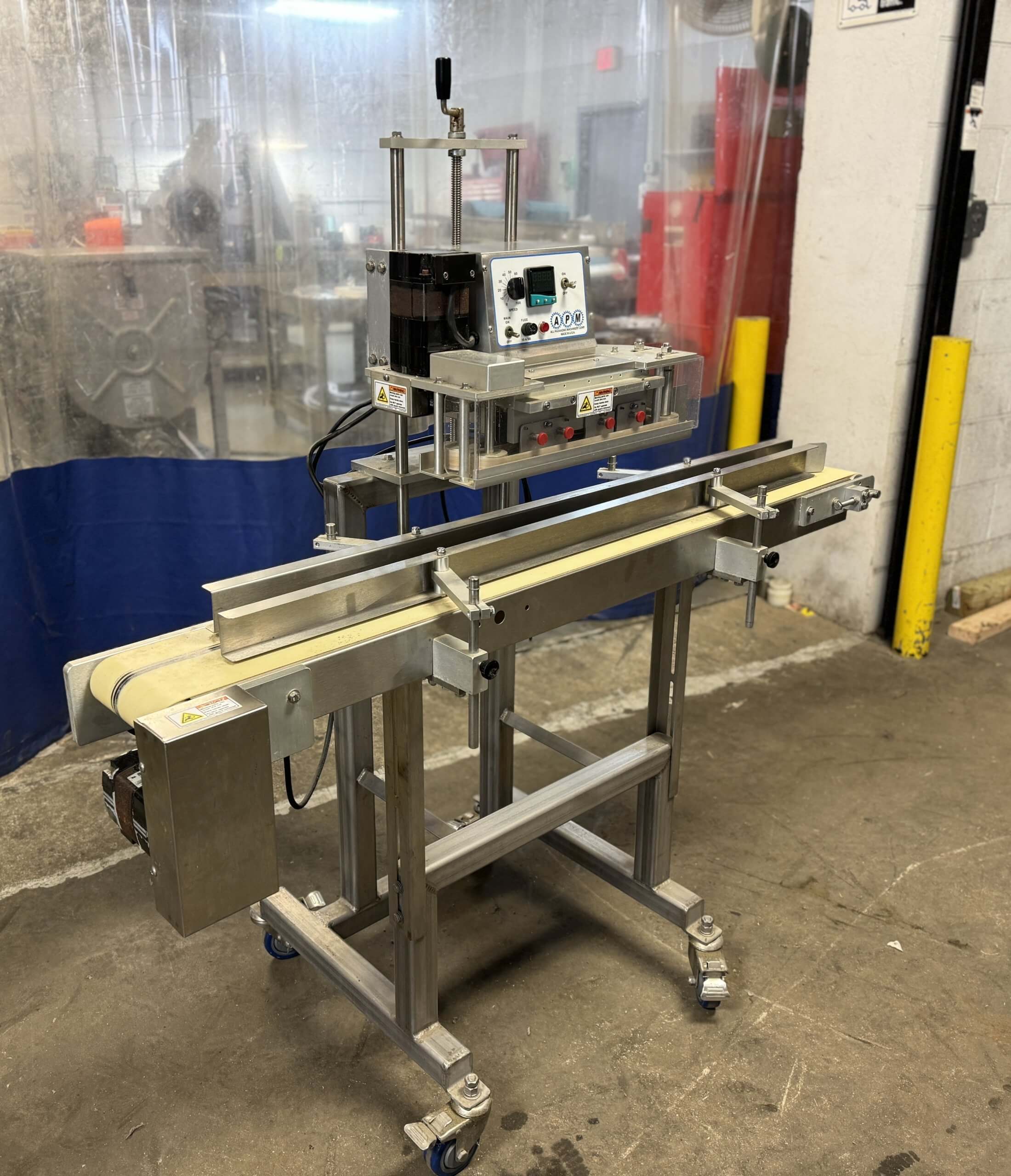 APM VCBSDM.1/4TX.6×5 Vertical Rotary Band Sealer. 110V/1PH/60HZ. Mounted on a p...