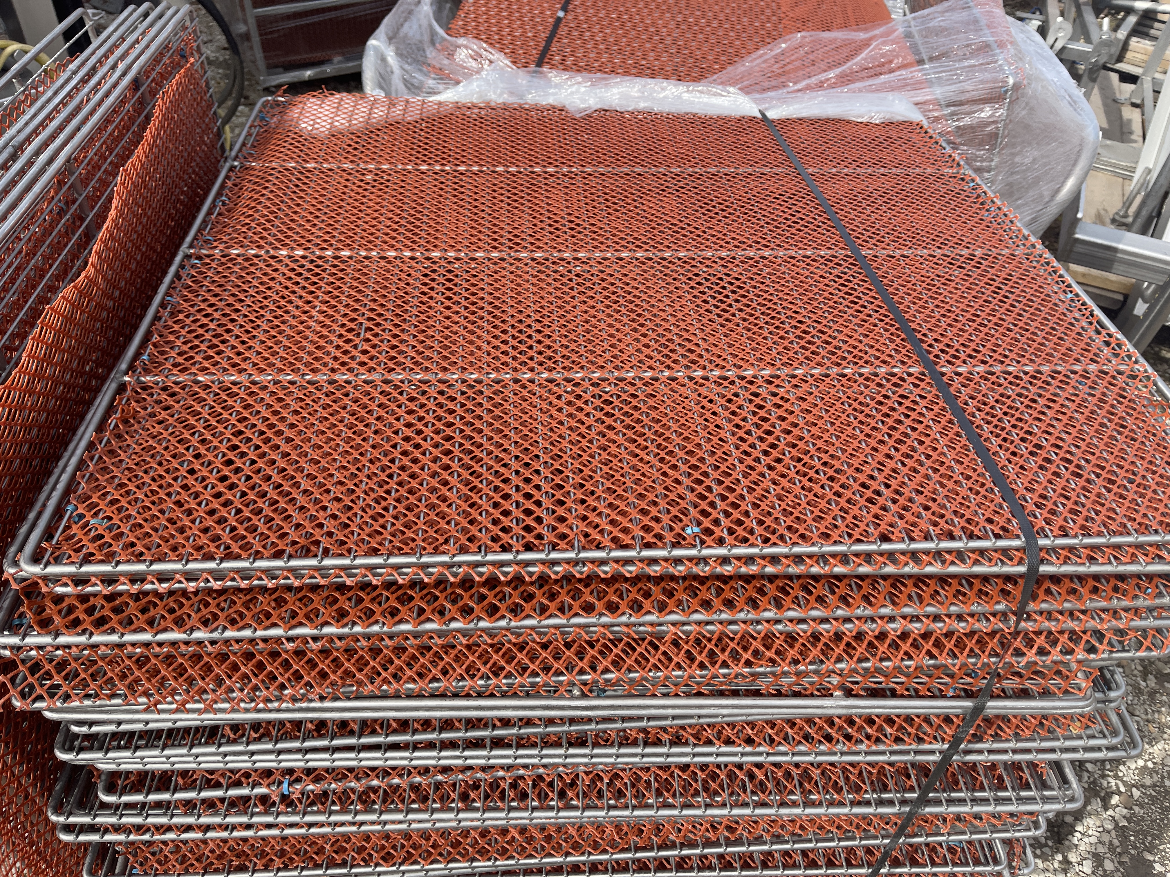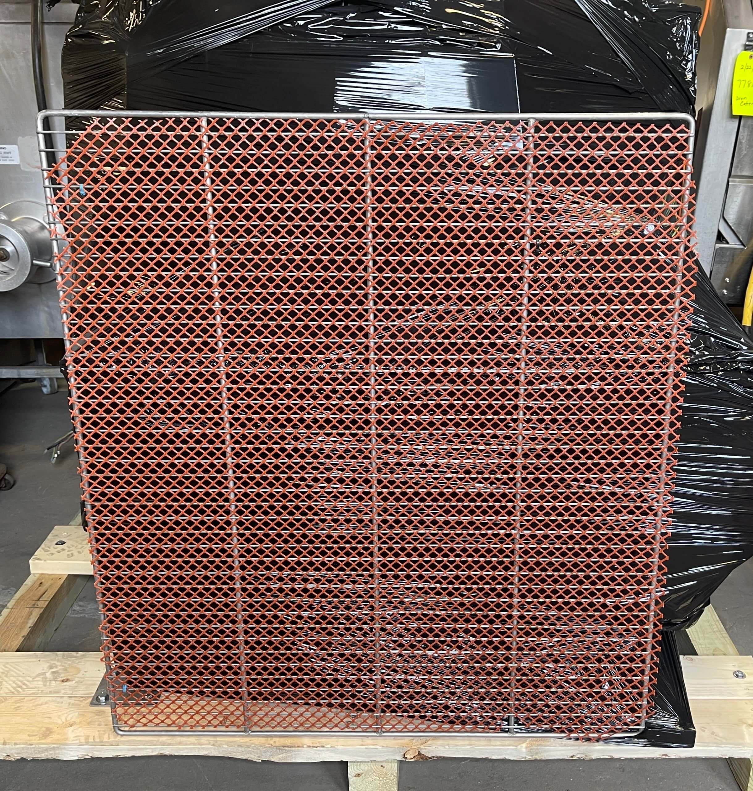 BEACON Smokehouse Screens. Electropolished stainless steel construction, 38″ x 42″ screen size, 3/8″ frame thickness with (3) 3/8″ main supports. 1/8″ cross rods., with removable Teflon sheets on each screen. Qty: 244 subjects to the final count.