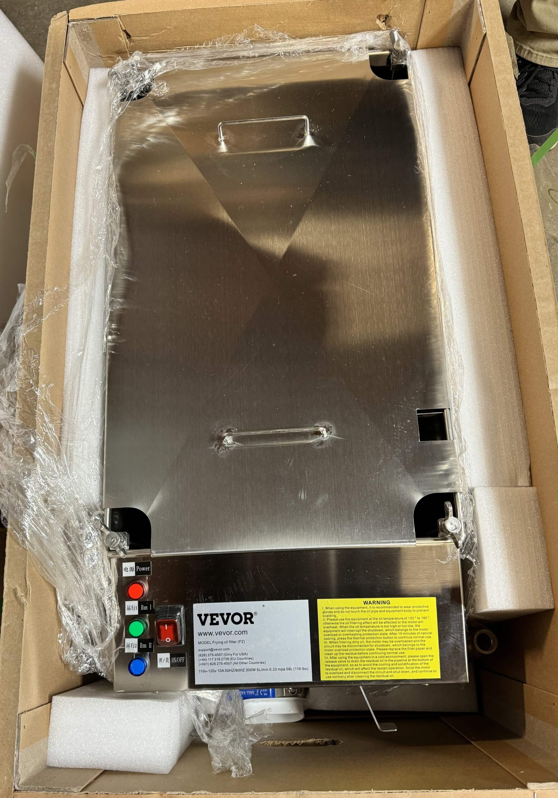 Belshaw Robot FRI AF-1 Donut Fryer. Electronic temperature controller, 354 per hour (30 dozen) @120 seconds frying time, stainless steel construction, 208V/1PH/60HZ. Includes new Vevor F2 portable oil filter.