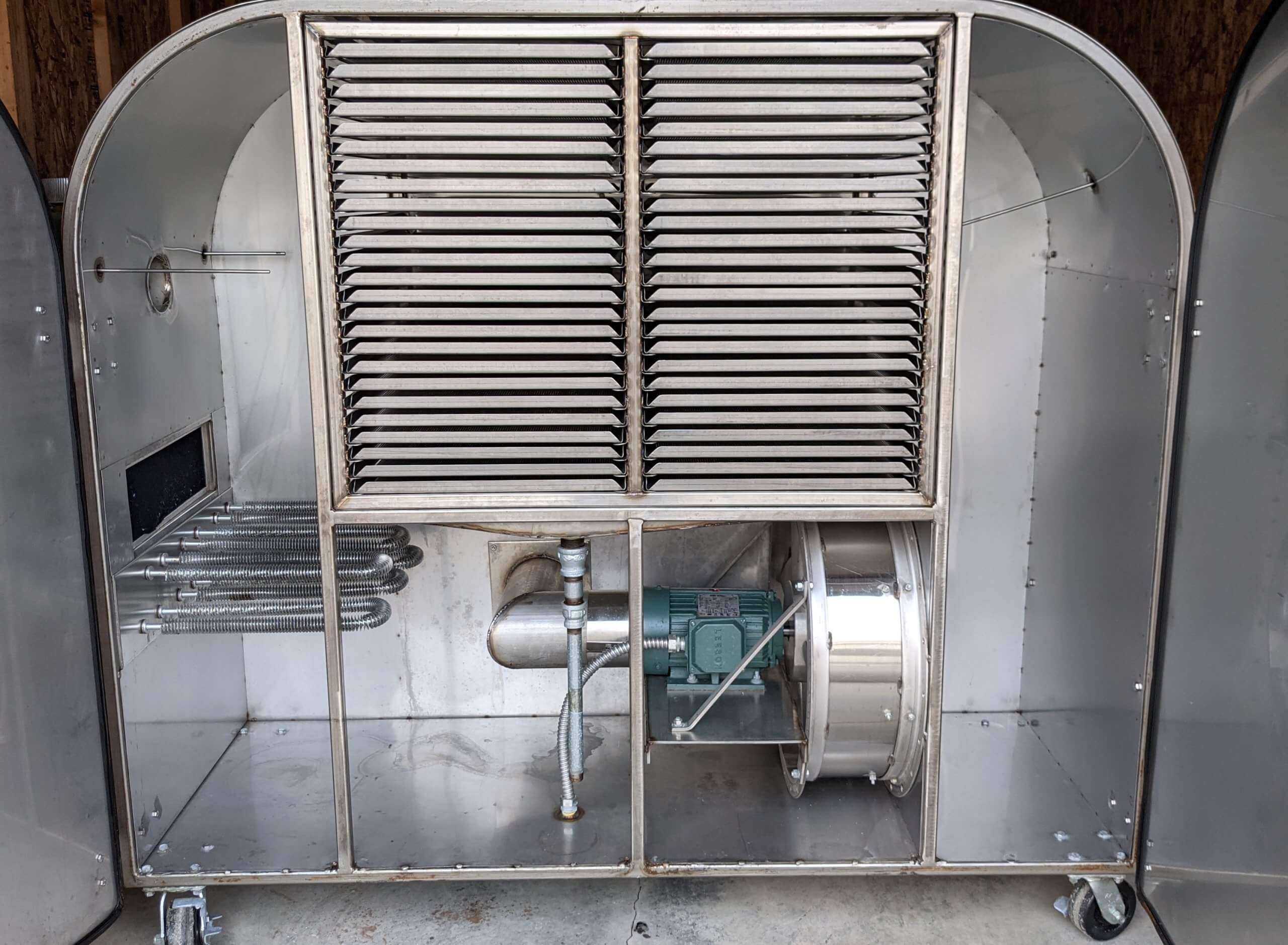Beltomatic TR50-E Dehydrator. 24 level and 50 rack capacity. 240V/1Ph/60Hz. Capacity of 50 trays (18″ x 26″). It can hold up to 200-250 lbs. of raw product. Like new with less than 200 hrs of operation. The dehydrator comes with 50 18″x26″ trays and 100 18″x13″.