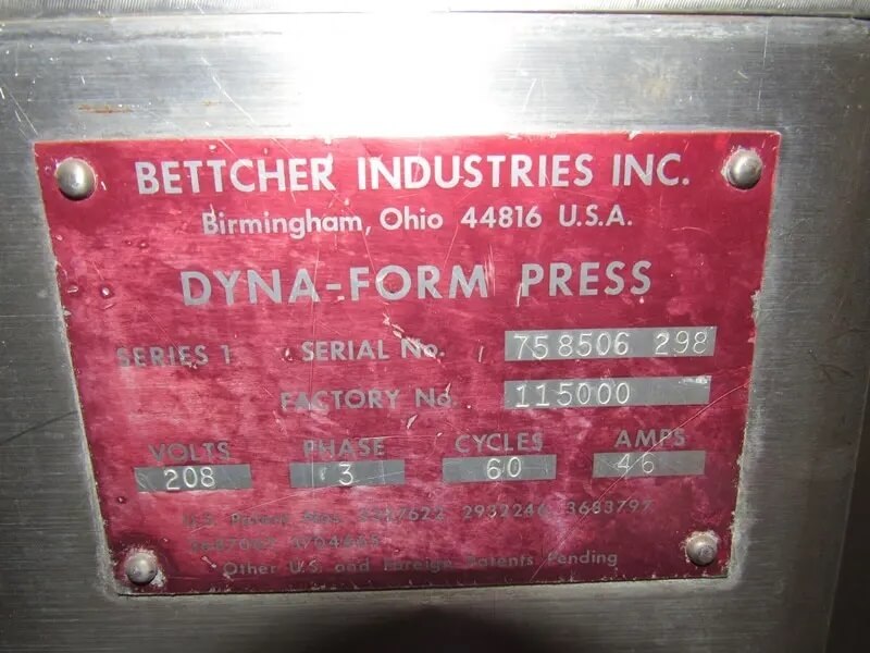 M&M Equipment Corp   >   Equipment List   >   Used   >   BETTCHER 75 Dyna-Form Frozen Meat Press