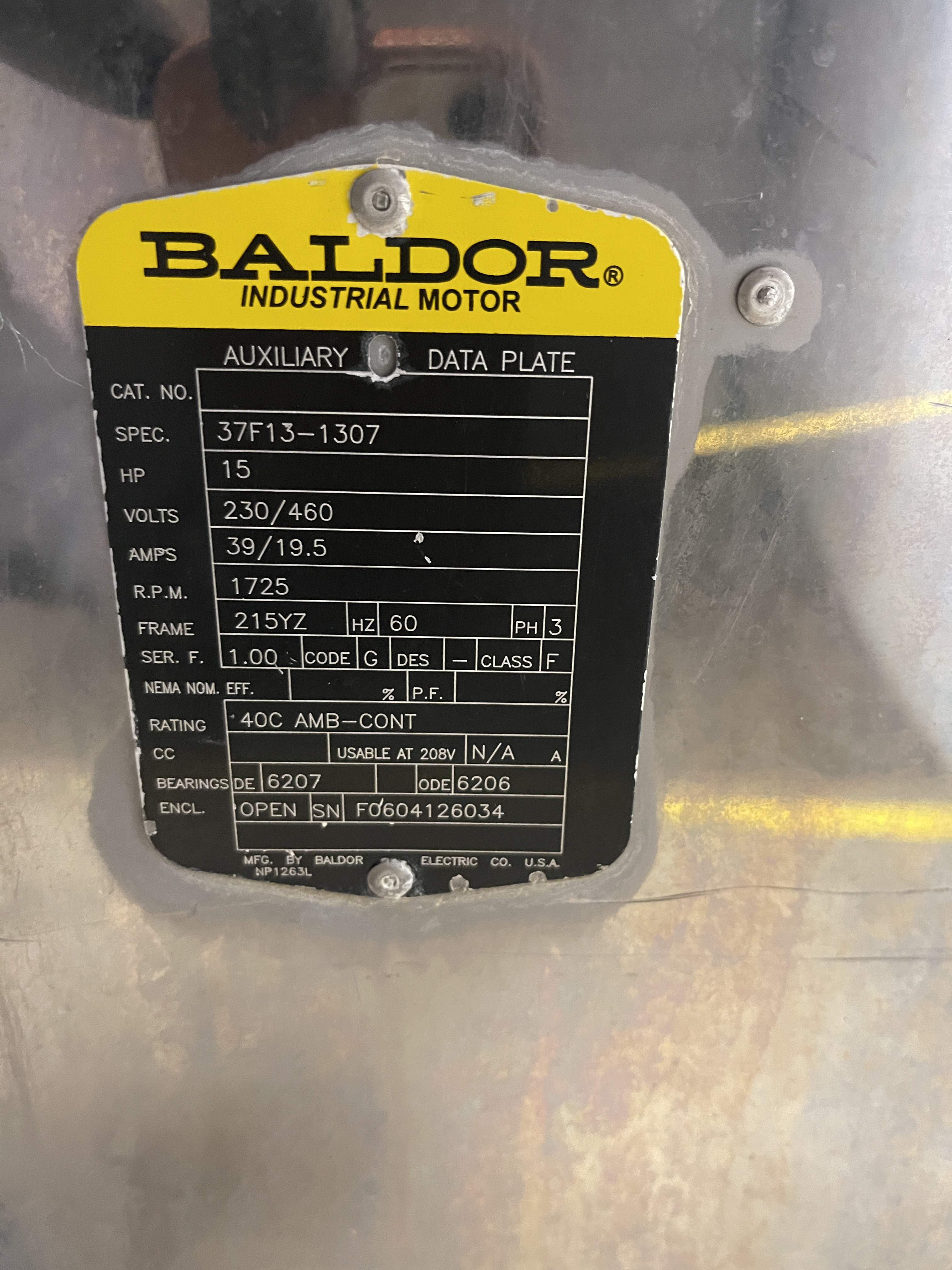WEILER 1109 Grinder. Stainless steel frame. Bottom mounted 100 hp TEFC motor, 460V/3...
