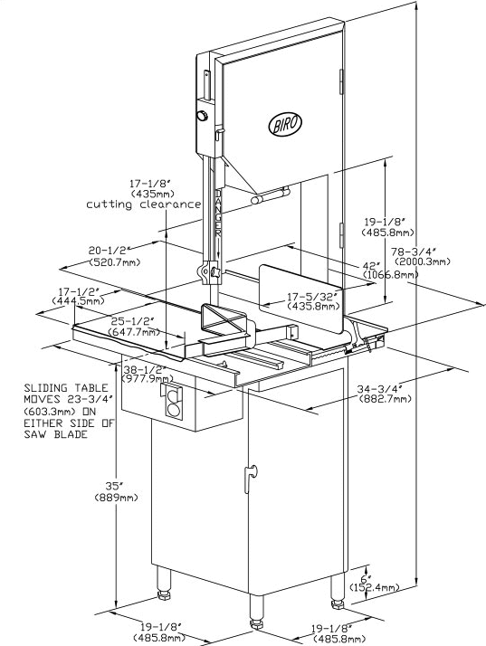 BIRO 55TL Band Saw & Poultry Saw. Stainless steel fixed head and door. 164″ X ...