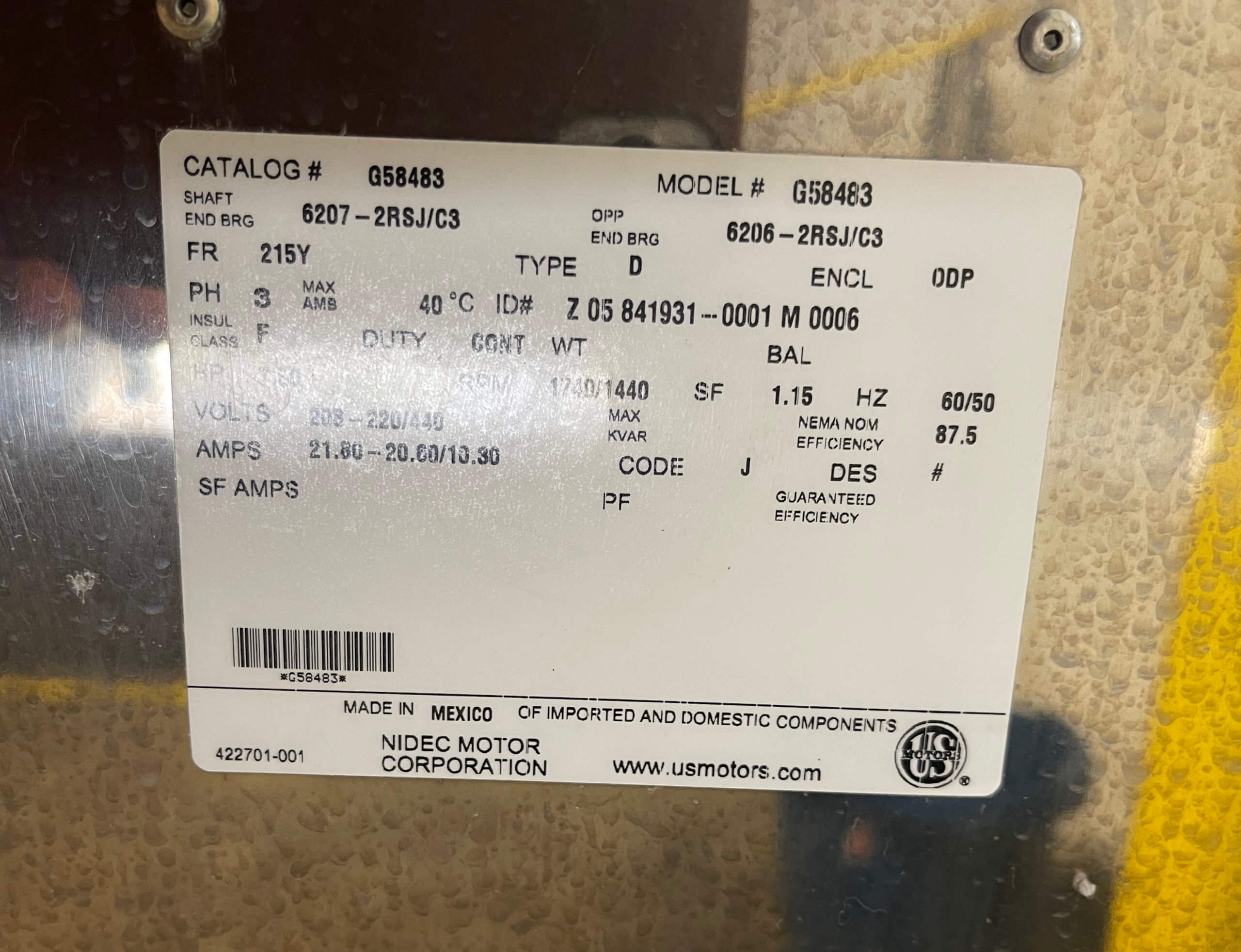 HOBART 4356 Mixer Grinder Motor Gearbox. 220V/3PH/60Hz, PL 15531....