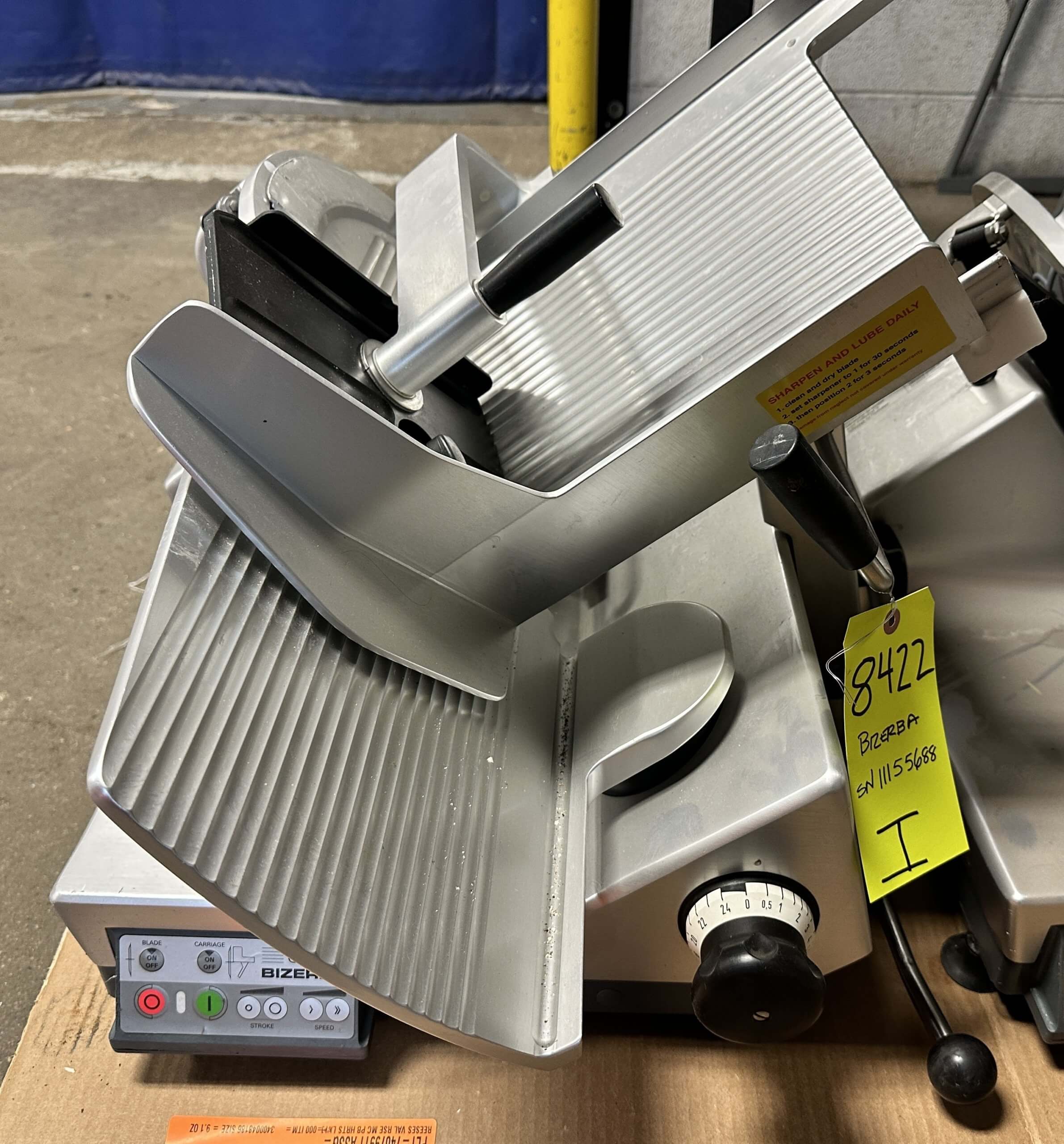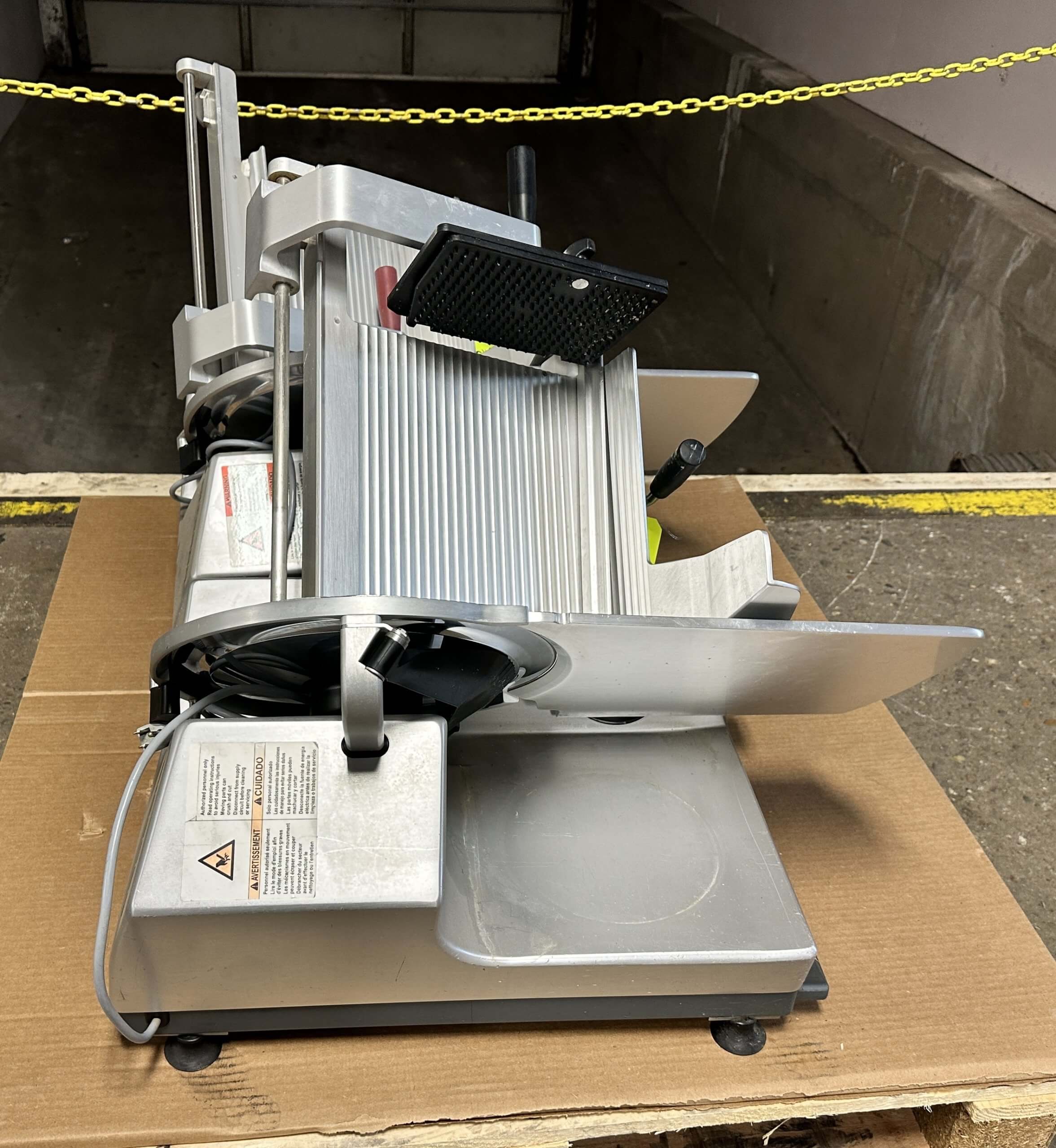 Bizerba Automatic gravity slicer. Anodized aluminum housing. 13″ diameter slic...