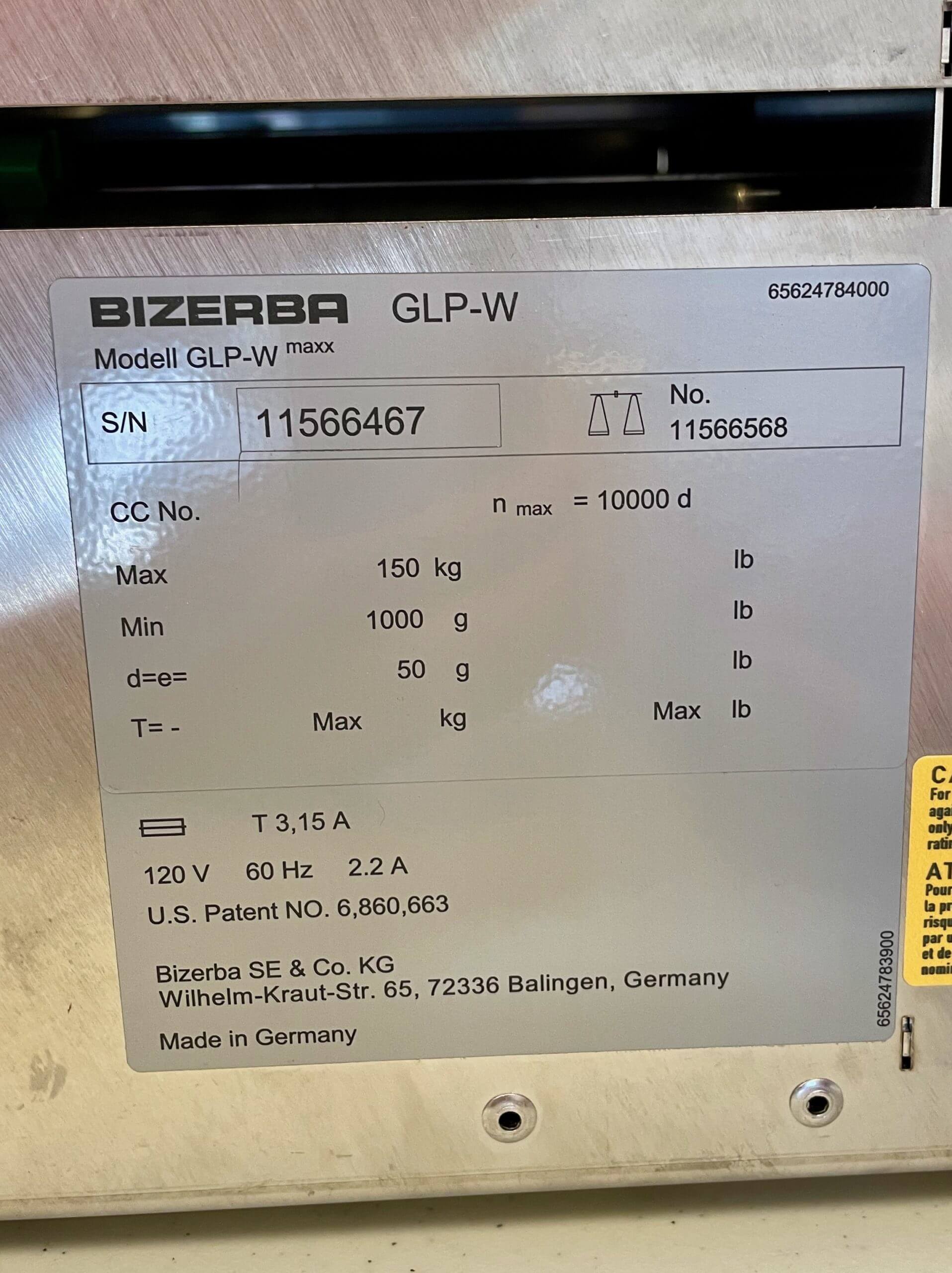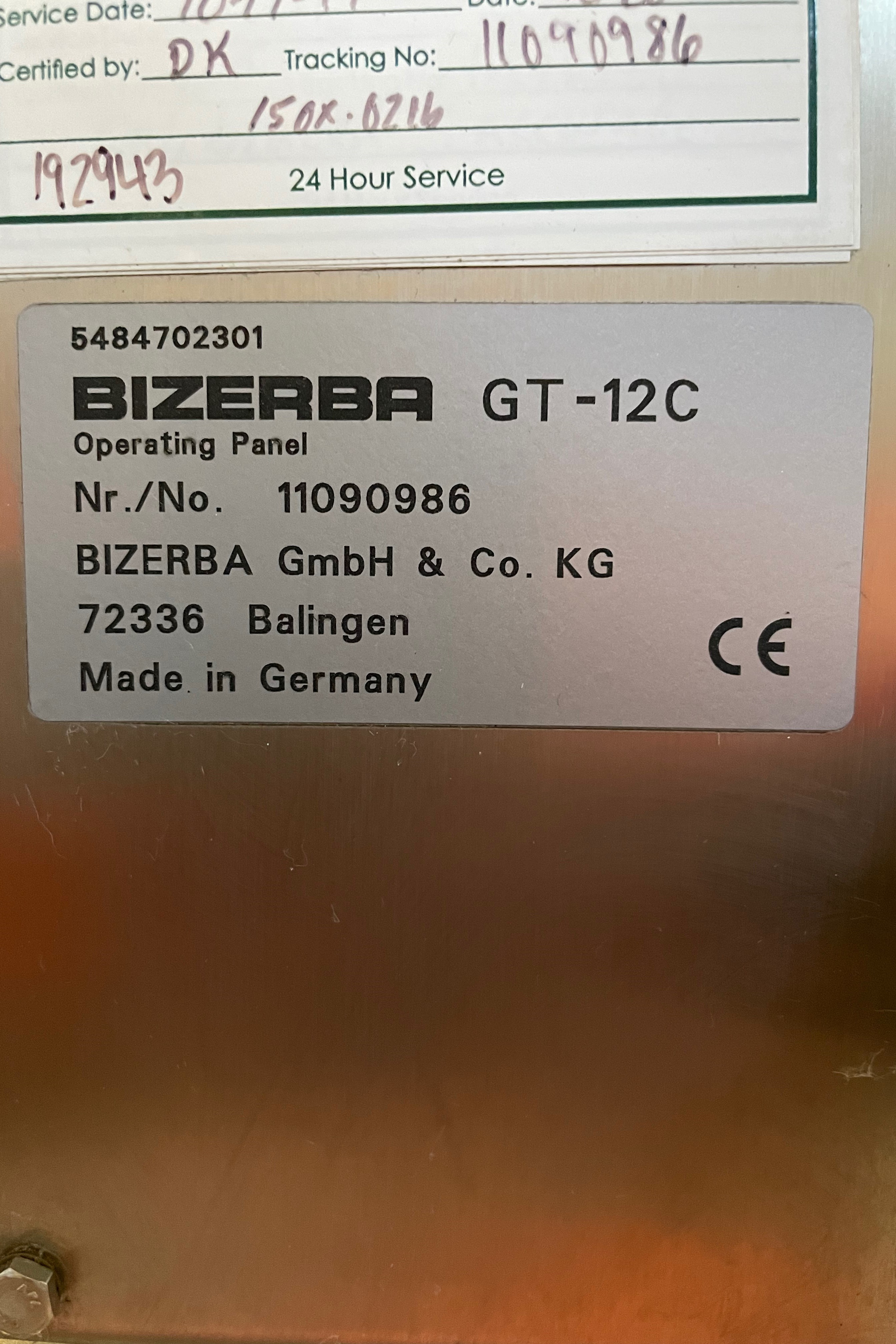 Bizerba GT-12C Bench Scale on Stand. stainless steel construction, includes iL Professional 150 SPM Scale/Load Cell System, GT-12C Touchscreen display and GLP-W printer. 110V/1PH/60HZ. (5) total units available.