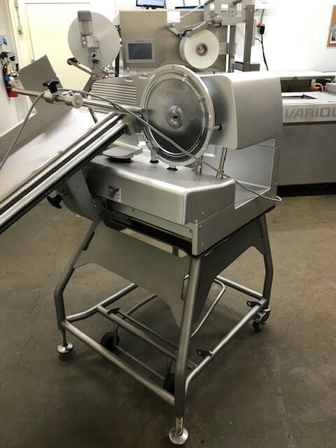 TREIF Zebra CE Slicer. Setup for 1/8″ slice thickness, minimum product temp. 2...
