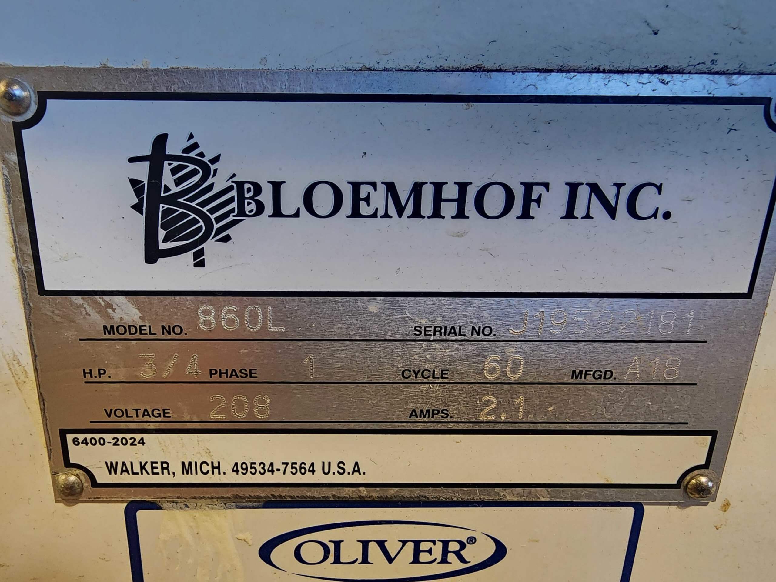 BLOEMHOF INC 860L Bread and Ro...