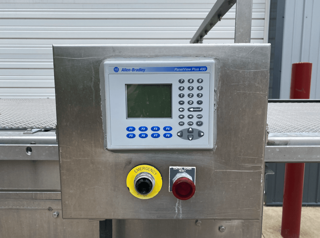 Formax Shuttle Conveyor. 6″ wide x 80″ long stainless steel mesh conveyo...