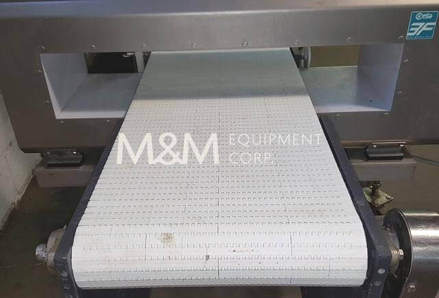 CEIA THS/3F Metal Detector, 29″ X 5.9″ Aperture, mounted on stainless steel conveyor, 16″ wide X 45′ long Intralox conveyor belt, 1/2hp drive motor, 110V/1PH/60HZ.