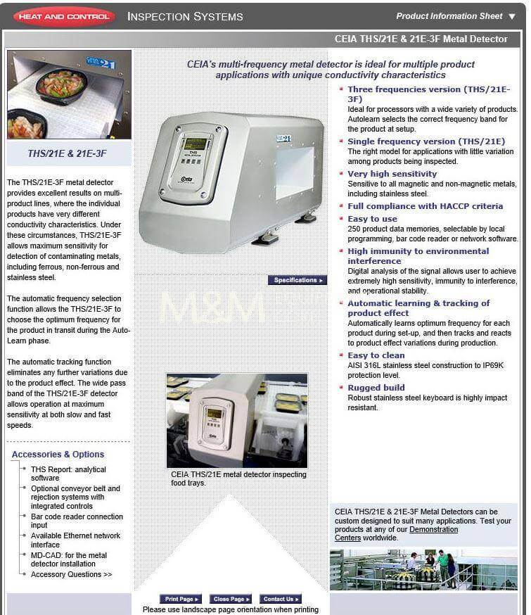 CEIA THS/MS21 Metal Detector. It comes with a conveyor 15″ long, 17.51″...