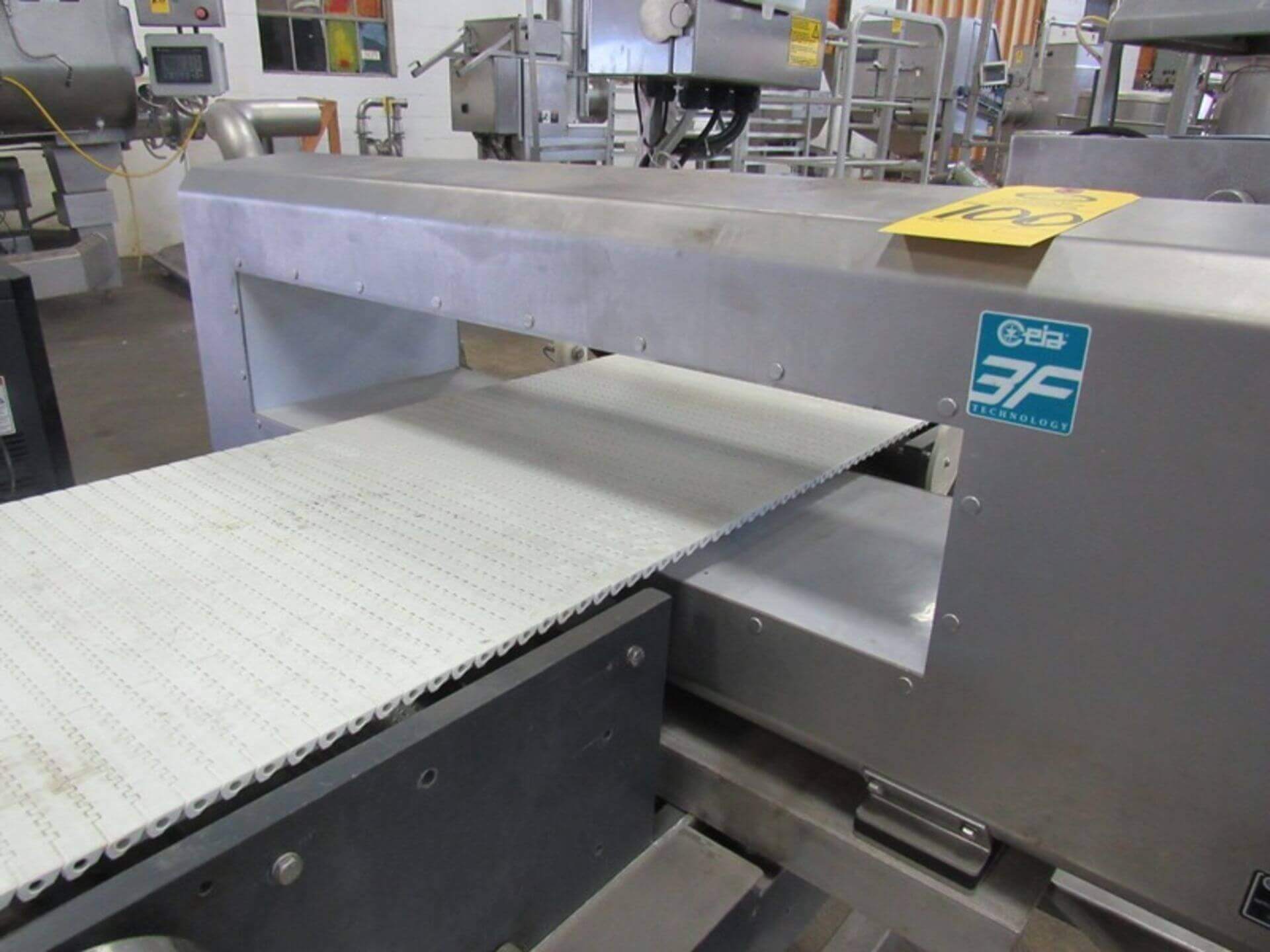 CEIA THS/3F Metal Detector And X-Ray Machine. 29 1/2″ W X 5 3/4″ T aperture, 16″ W X 4′ L plastic conveyor, GS conveyor speed control, 110 volts.