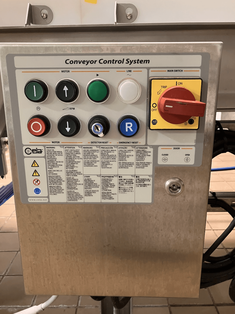 CEIA THS/MS21 Metal Detector. It comes with a conveyor 15″ long, 17.51″ wide belt, Last calibrated 2022, reliable, high-performance solution for detecting metal contaminants in food and pharmaceutical industries. This advanced system boasts a wide range of frequencies, ensuring unmatched sensitivity and precision. With its user-friendly interface, easy maintenance, and IP69K-rated waterproof design, the THS/MS21 ensures maximum safety and compliance with industry regulations.