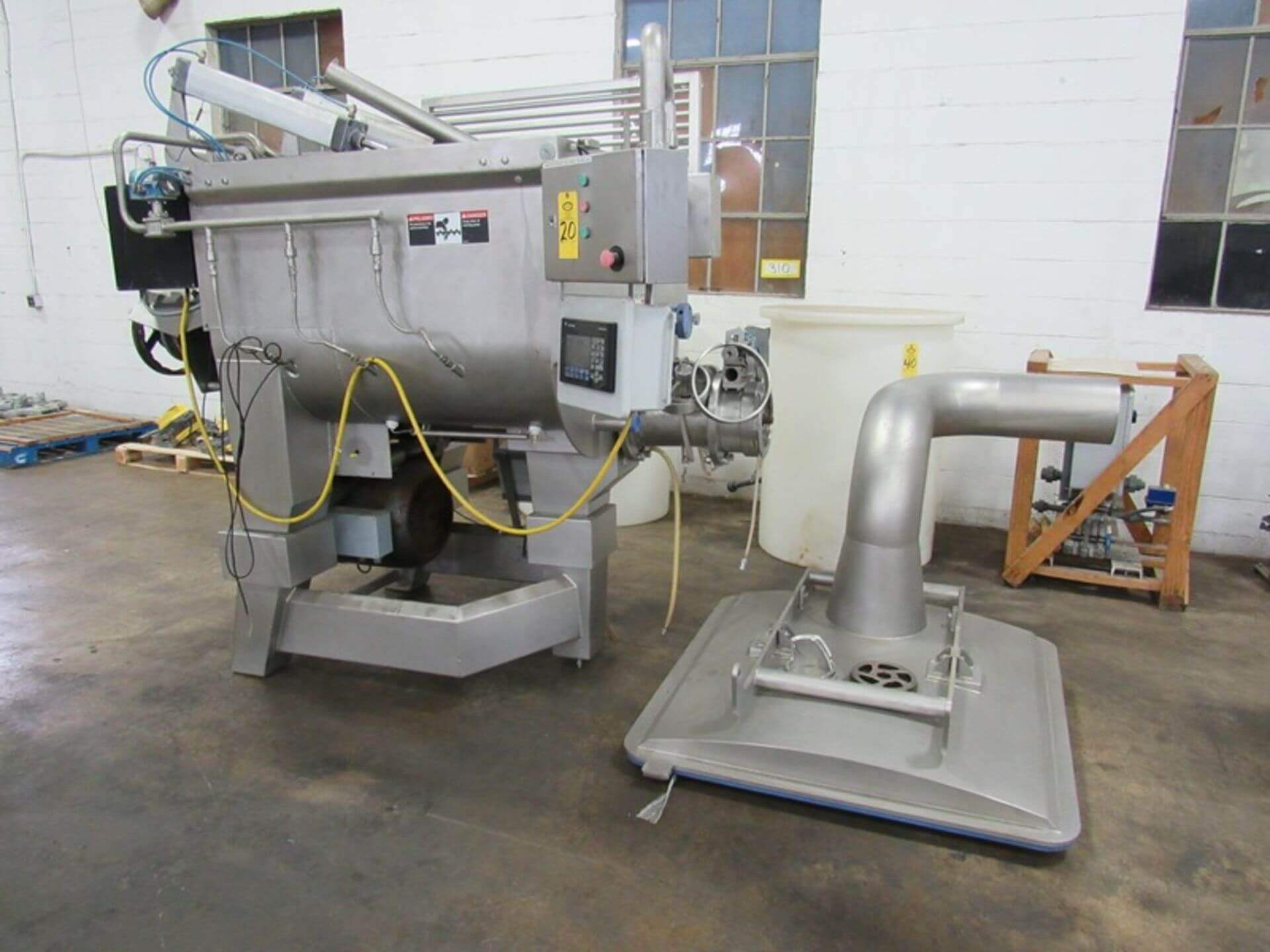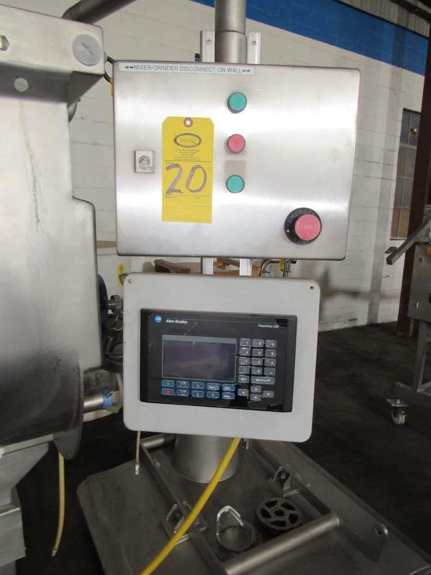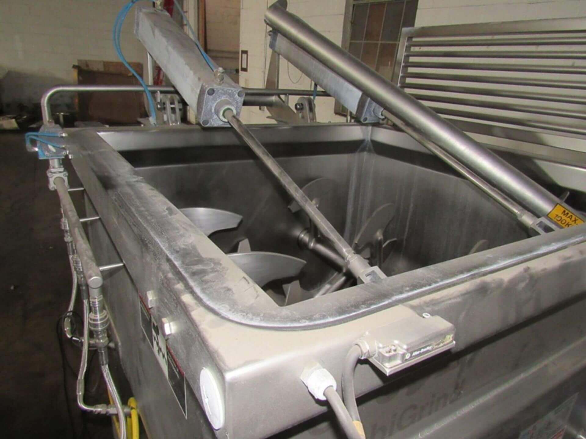 CFS COMBI GRIND 1000 Mixer Grinder. CFS Mdl. Combi Grind 1000 Stainless Steel Mixer/Grinder, dual agitation paddles, bottom injected CO2 ports, stainless steel lid with exhaust, Allen-Bradley Panel View 550 touchscreen controls, pneumatic lid.