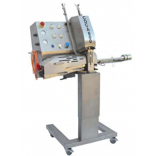 CLIPTECHNIK CDC-A 800 Chub Machine & Clipper. Cliptechnik CDC-A 800 Automatic double clipper, capable of clipping natural, artificial, fibrous and cellulose casings in a caliber range of 25mm-105mm, uses CT-810 – CT-830 Clips, available with optional automatic looper, string dispenser or spool clip systems. Requires 4-6 bar of air.