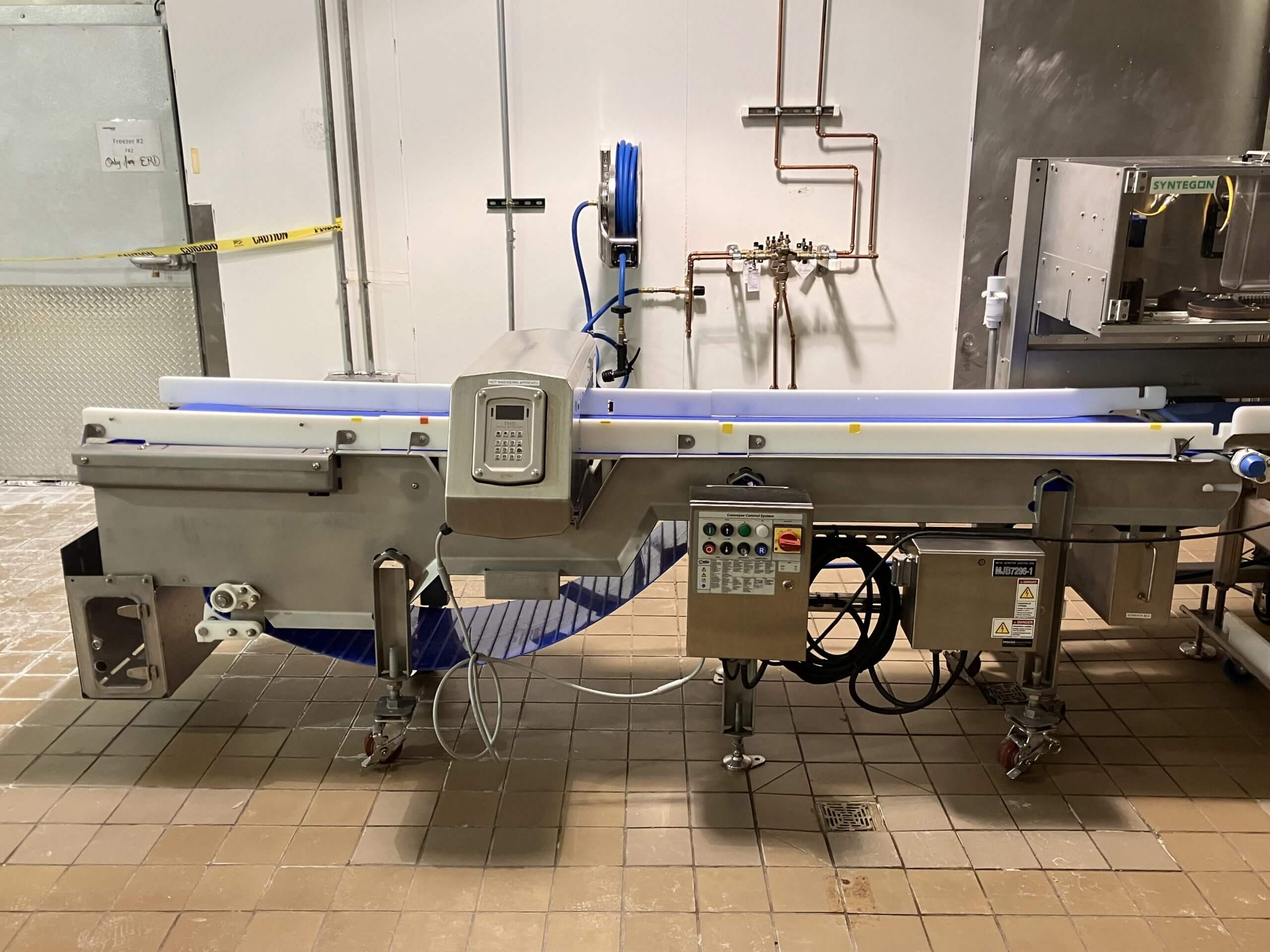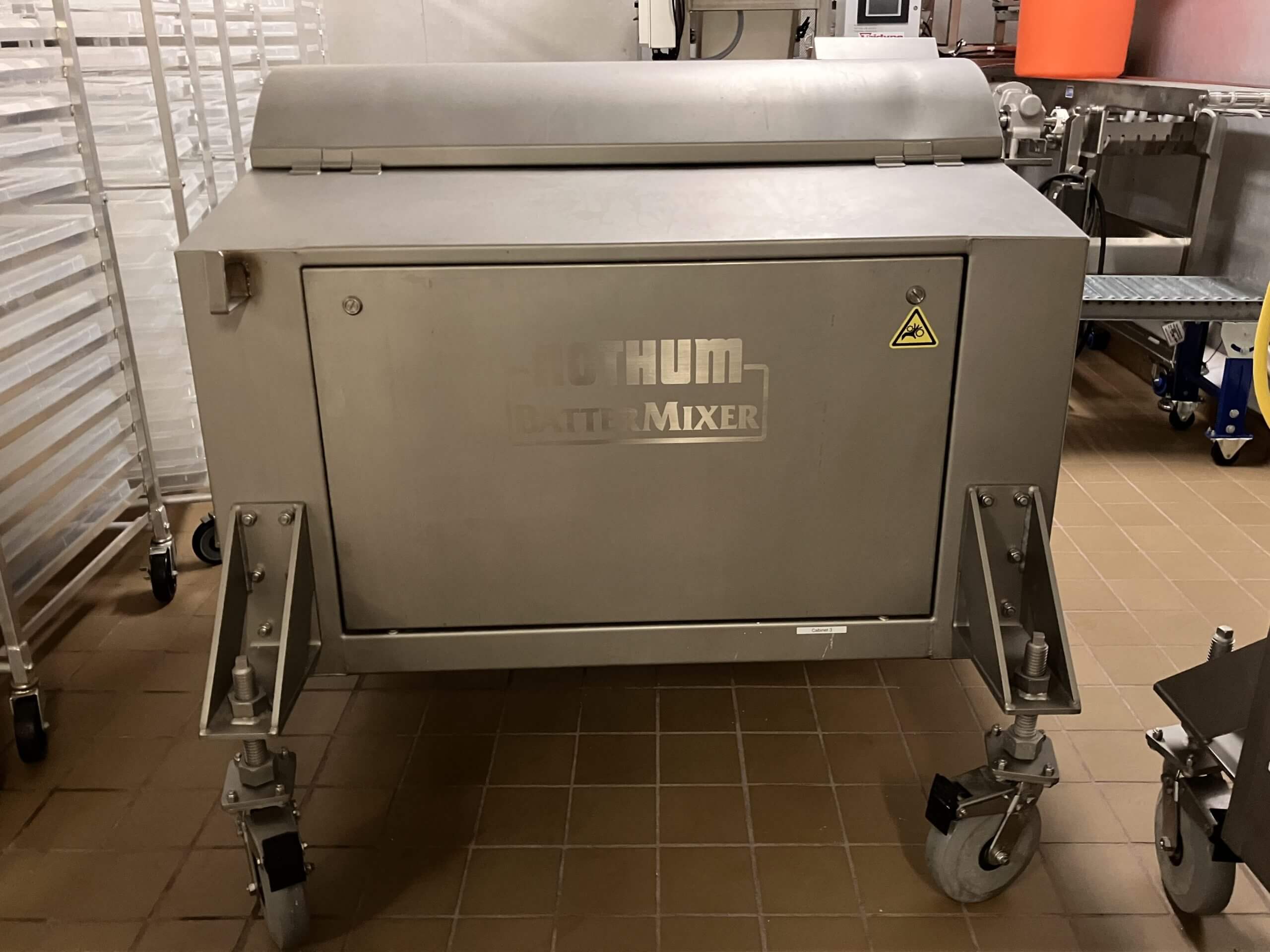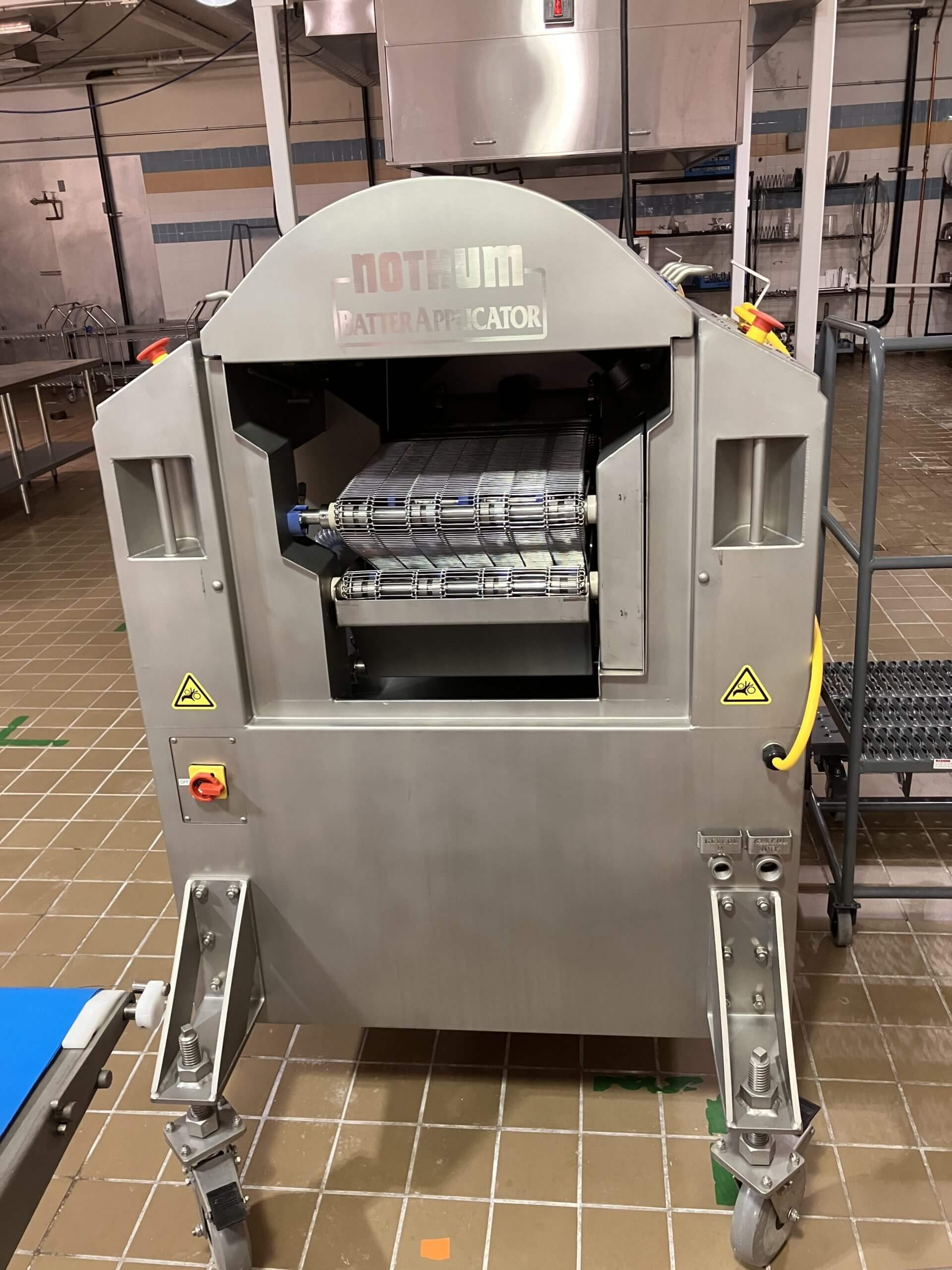 Complete Cook Line JBT, Nothum, Hollymatic. Ideal for smaller production or R&D facility. Highlights Includes: Globe SP 60 qt. Mixers with accessories; Savage Bros Bowl lift; Hollymatic R 2200-18 Drum Formers; Nothum 14″ Breading line with Batter mixer; JBT/Stein FA-5 Fryer; with Hood & Fire suppression system; CEIA Metal Detector; Tridyne F-100-2 Weigh and Filling scale; Doboy CBS-D 750 Band Sealer; Transfer conveyors, Rolling Tables, Graco diaphragm pump. Equipment purchased new 2019 – 2020.