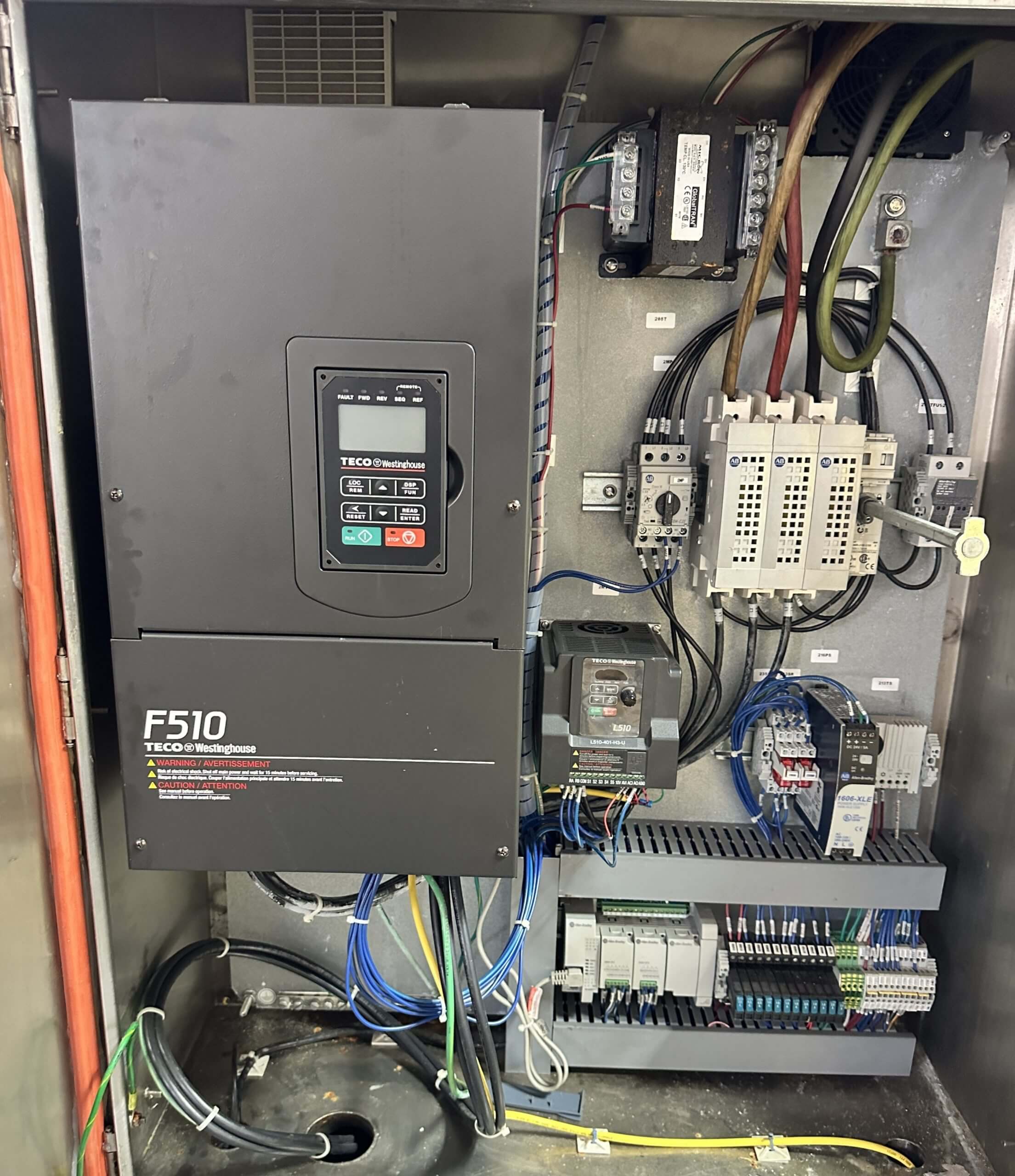 COZZINI CVM5 Versamill Continuous Emulsion Mill. stainless steel construction. Allen Bradley Panel view programable digital control. Uses a series of 5″ Plate and knife cutting configurations. 400 Lbs. capacity hopper, 50 hp TEFCO motor, 460V/3PH/60HZ. 66 amps. Mounted on casters.