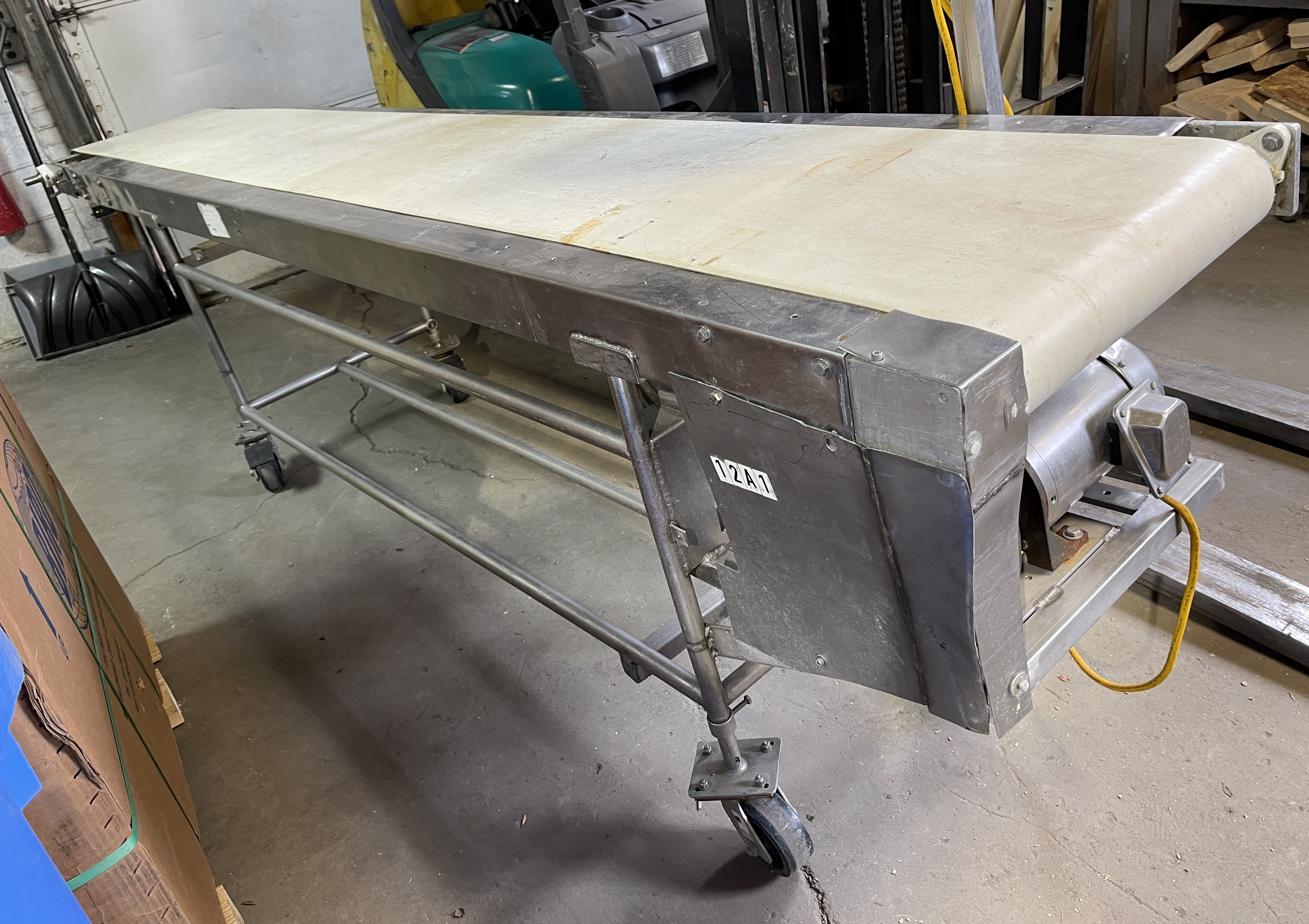 STAINLESS STEEL 12″ W X 7′ L Frame Roller Conveyor. This machine has bee...