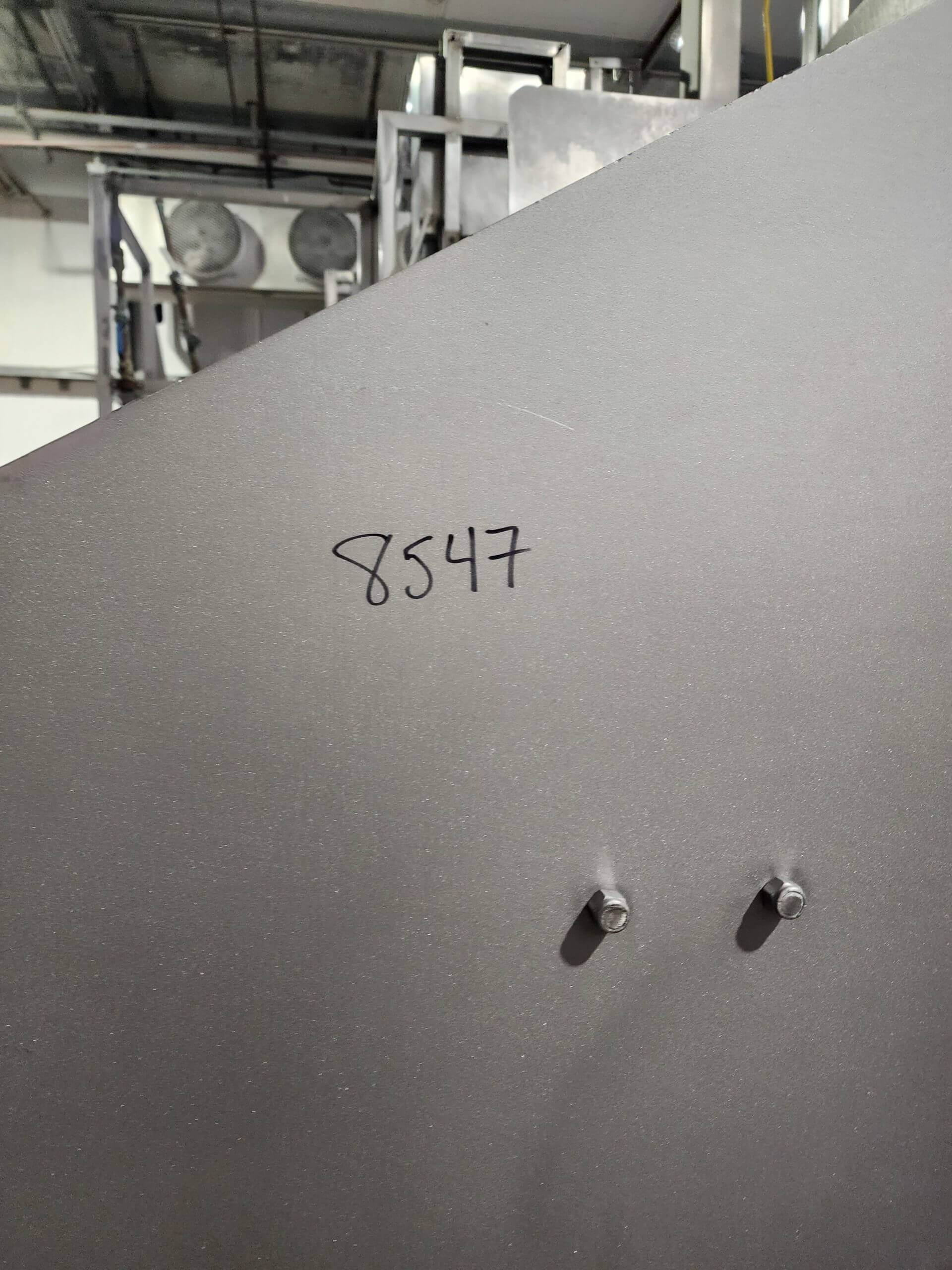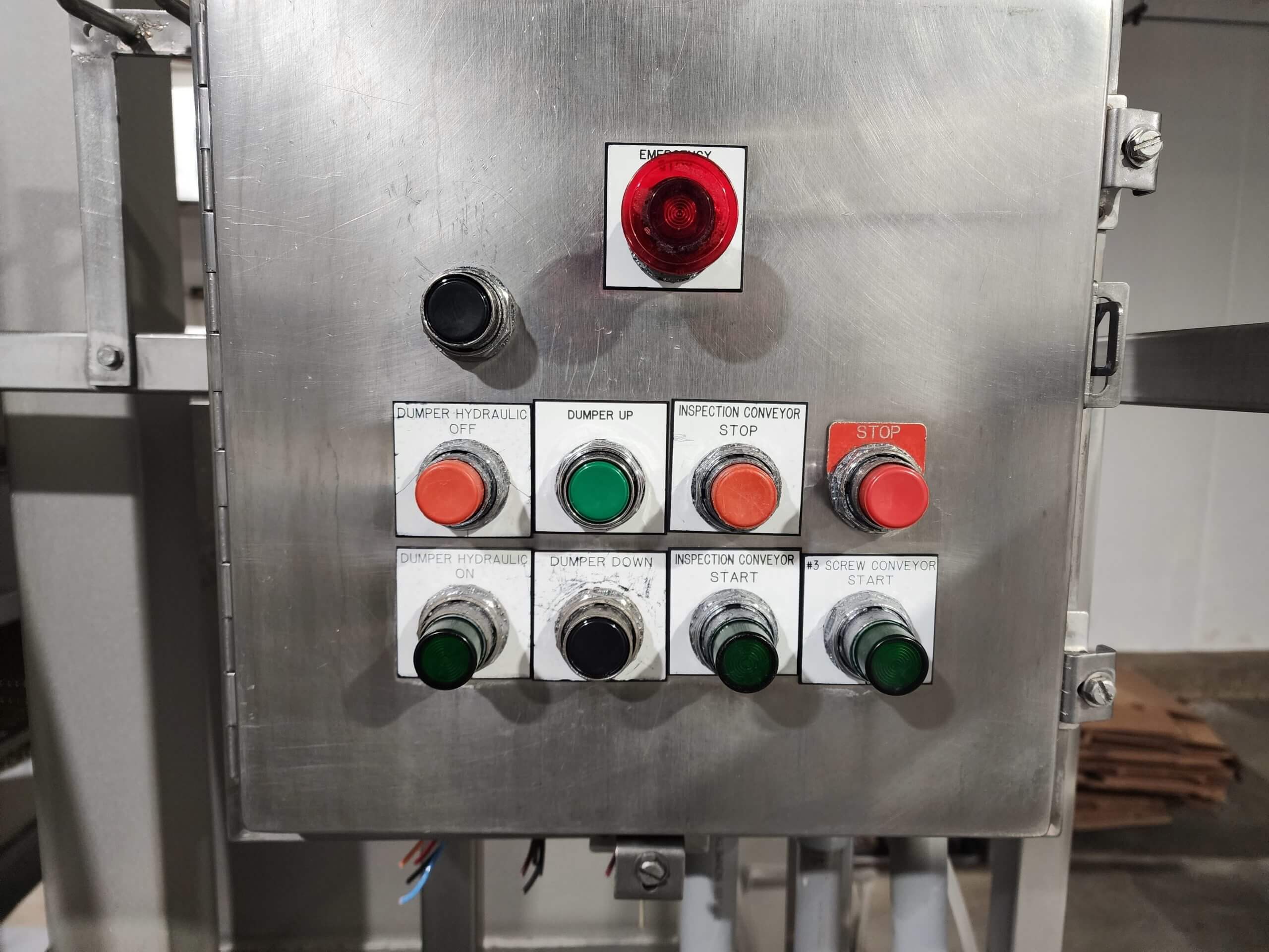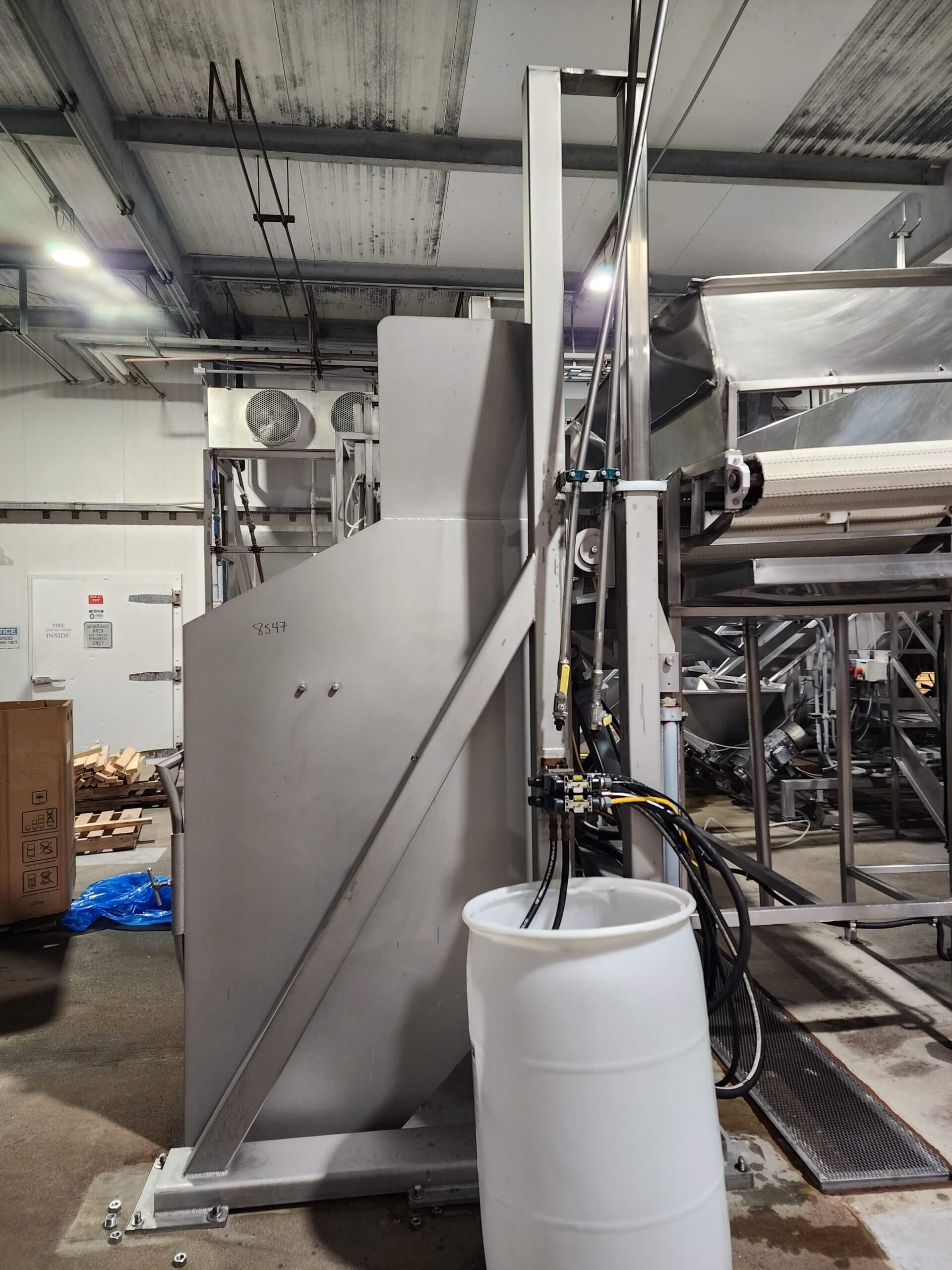 Custom Stainless High Lift Vat Dumper. all stainless steel construction. 112″ Dump height from lip, 51″ wide x 47″ deep bed, 55″ hold down bar, 129″ overall height, hydraulic lift cylinders. Includes Hydraulic power pack. 460V/3PH/60HZ.