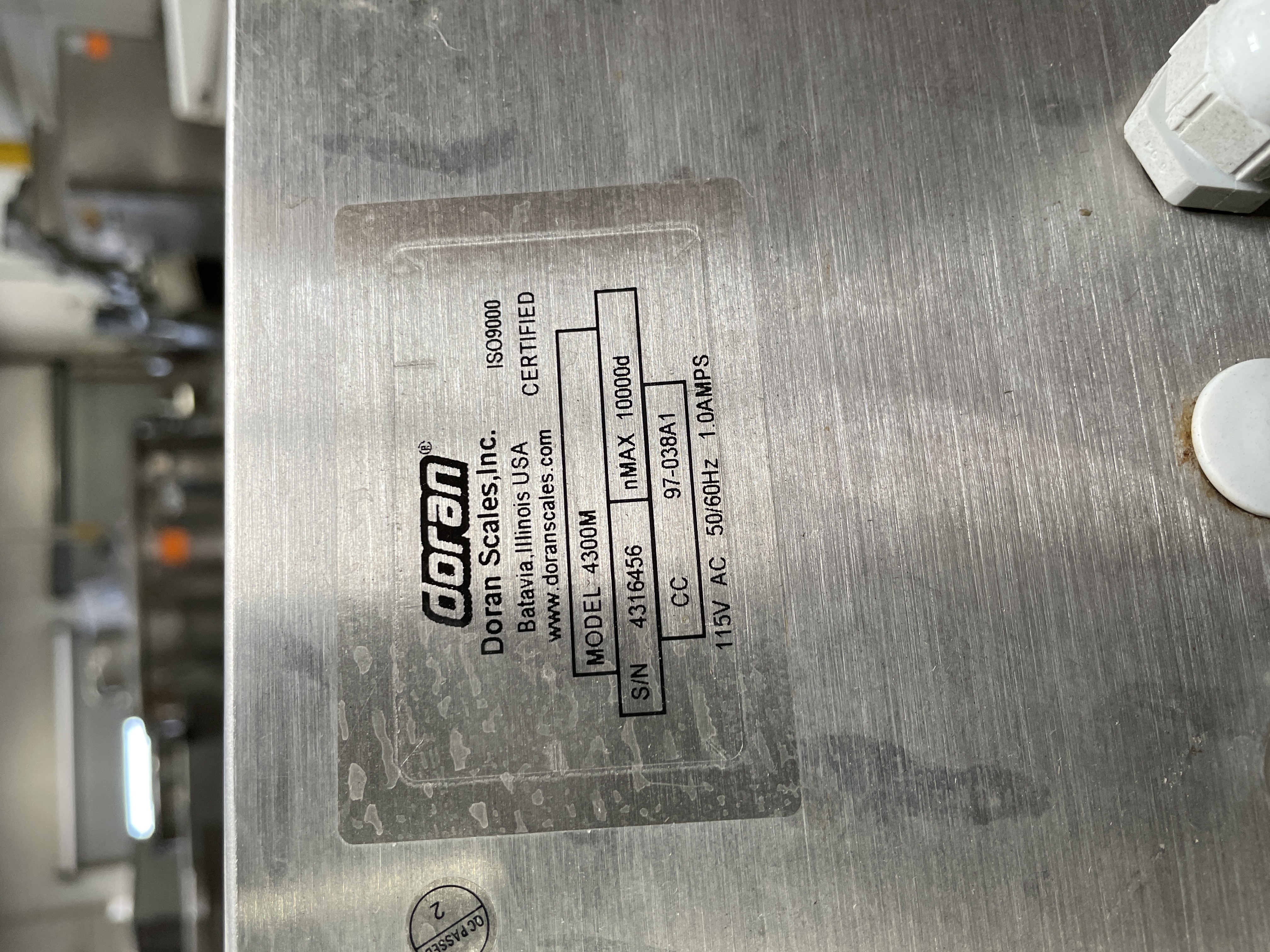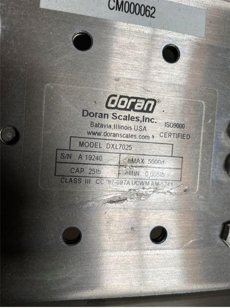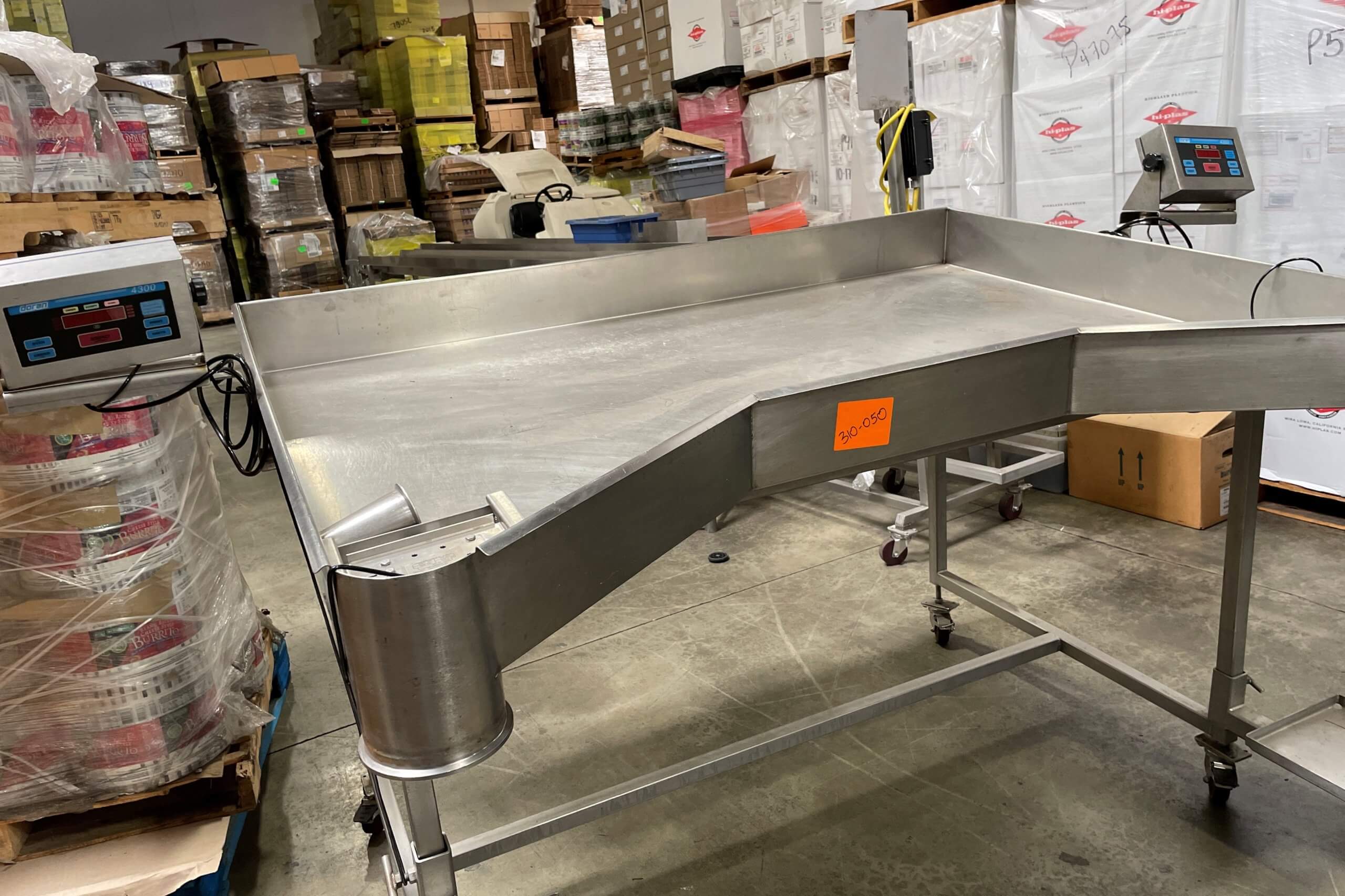 CUSTOM STAINLESS Inspection Table. 62″ wide x 55″ deep, 3″ full lip, mounted on casters. Includes dual Doran DXL7025 digital Scale read-outs.