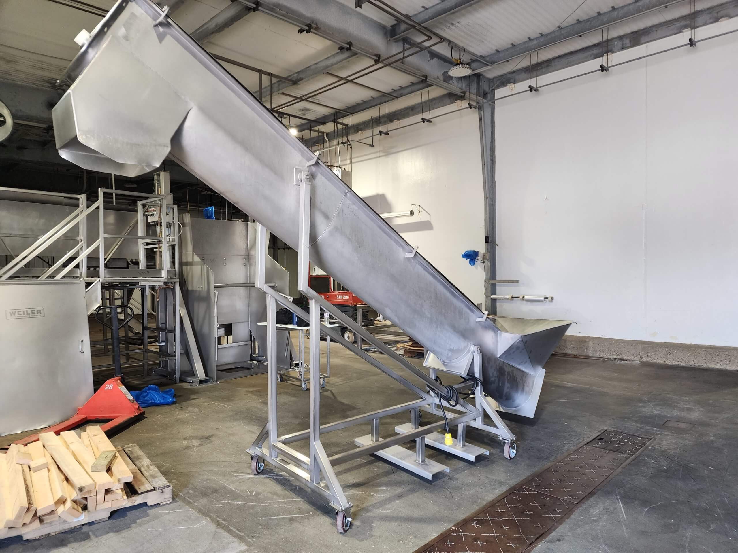 Weiler Incline Screw Conveyor. All stainless steel construction. 12″ diameter auge...