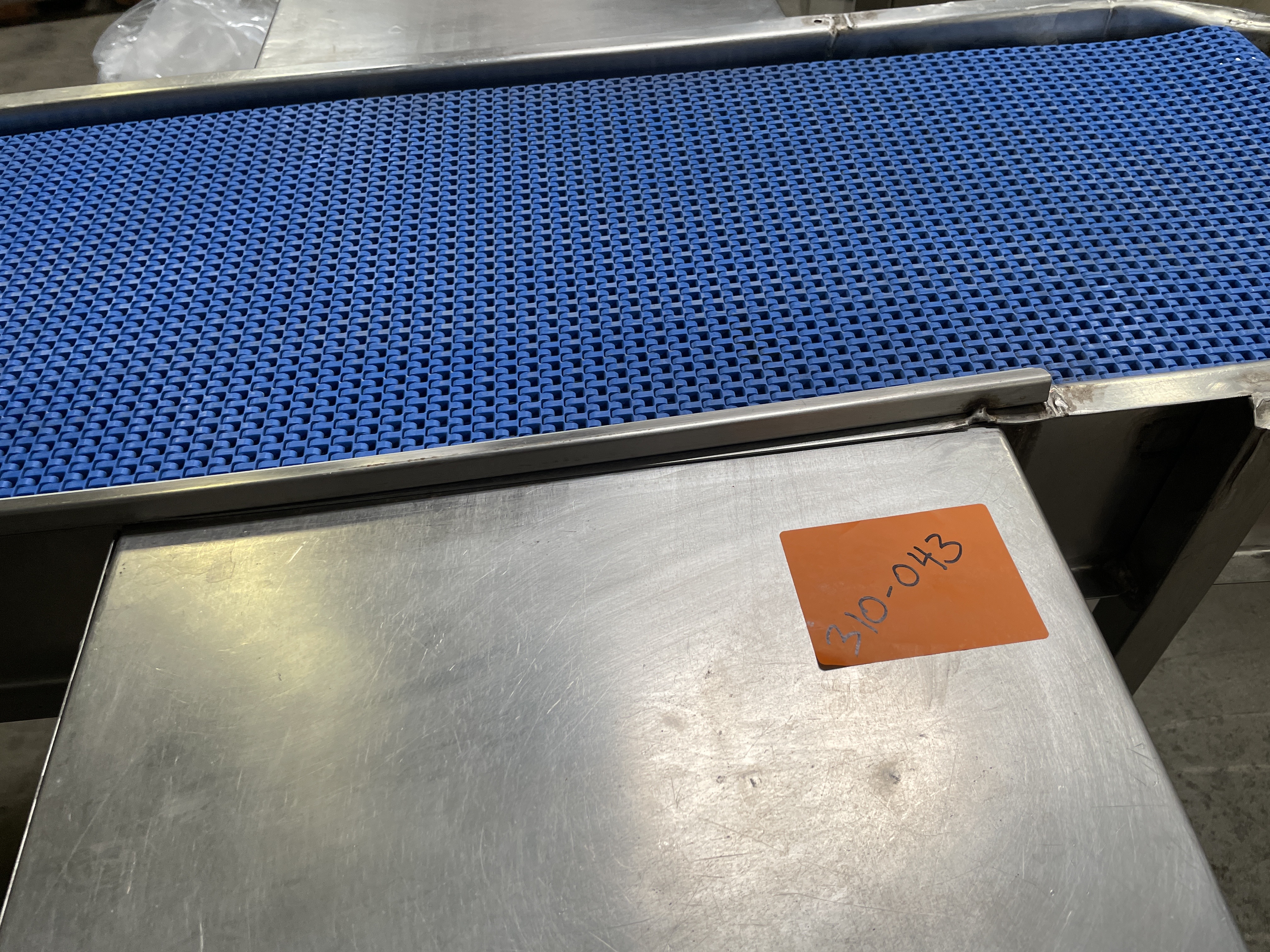 CUSTOM STAINLESS Transfer Conveyor. 18″ x 59″ plastic conveyor belt. Sta...