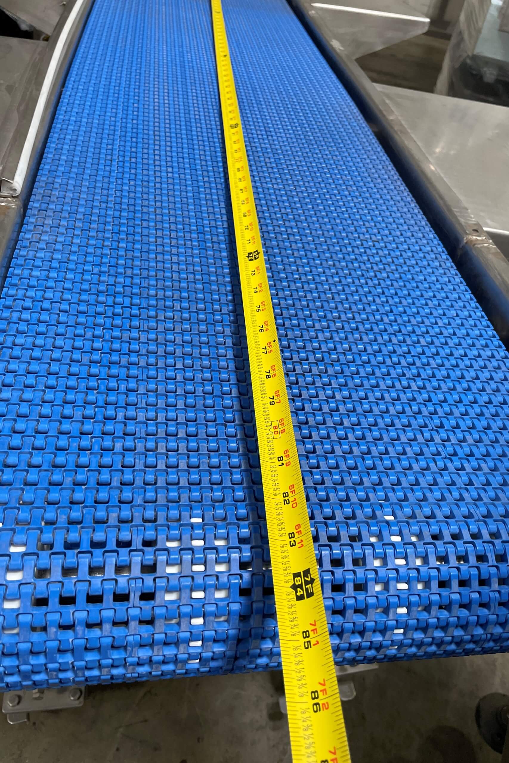 CUSTOM STAINLESS Transfer Conveyor. 17.5″ wide x 84″ long plastic convey...