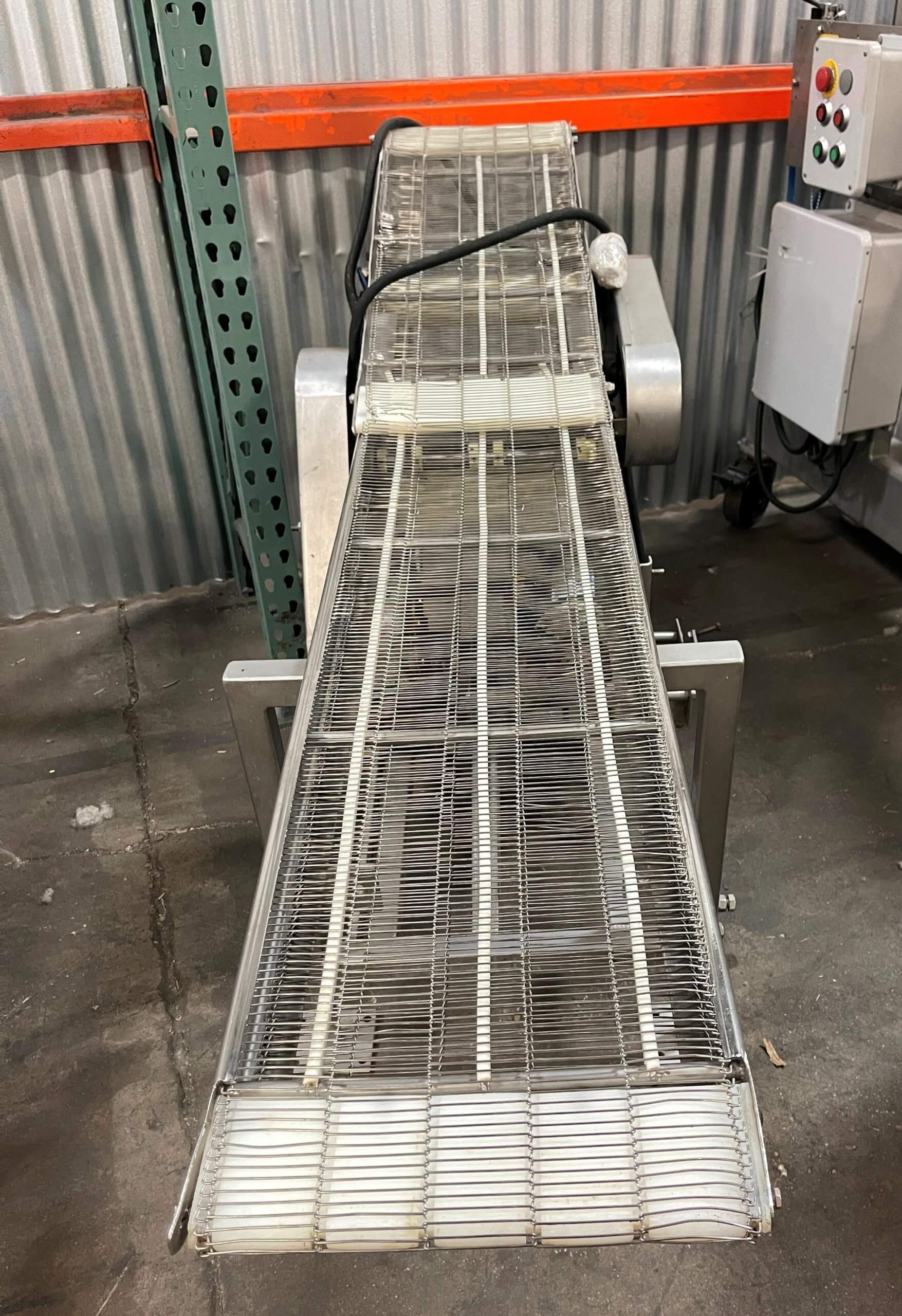 Formax Shuttle Conveyor. 6″ wide x 80″ long stainless steel mesh conveyo...