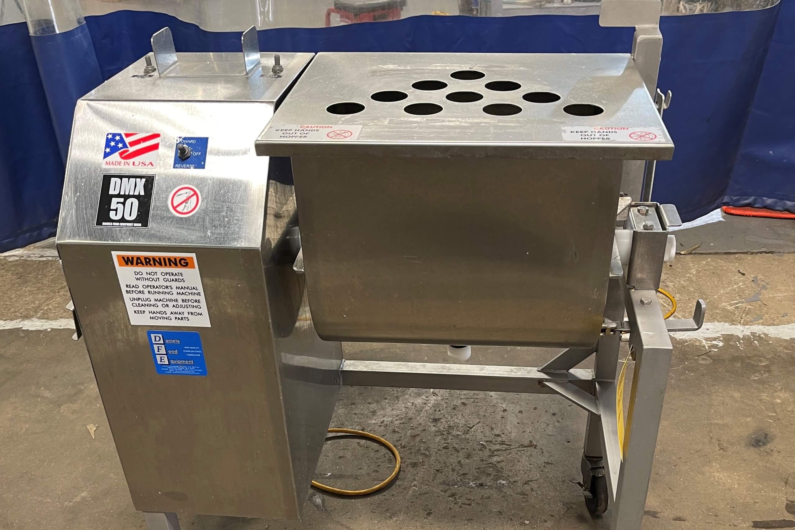 DANIELS DMX 50 Mixer. 50# capacity, forward & reverse paddle mixing, stainless s...