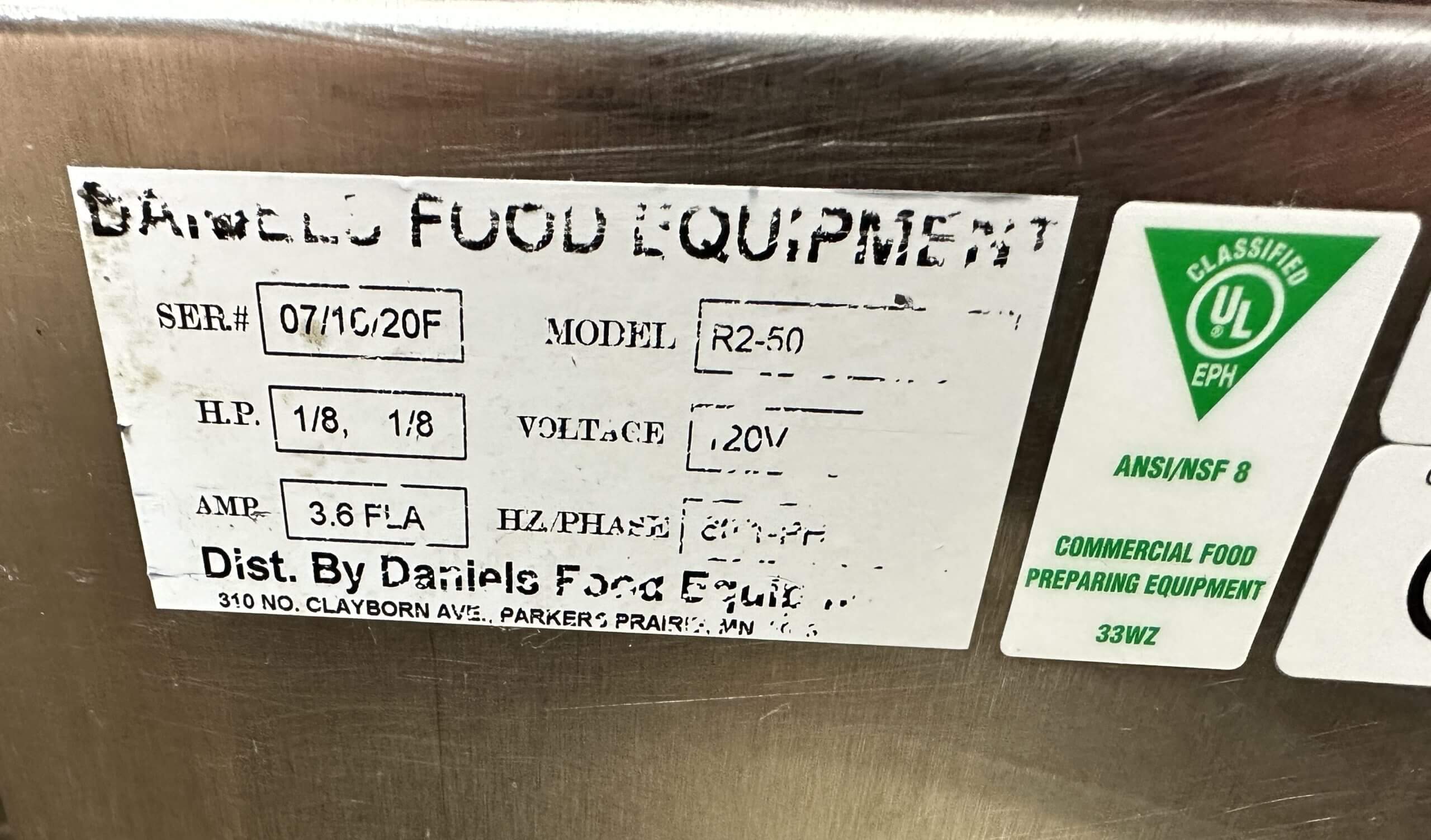 | Manufacturer | Daniels Food Equipment |
