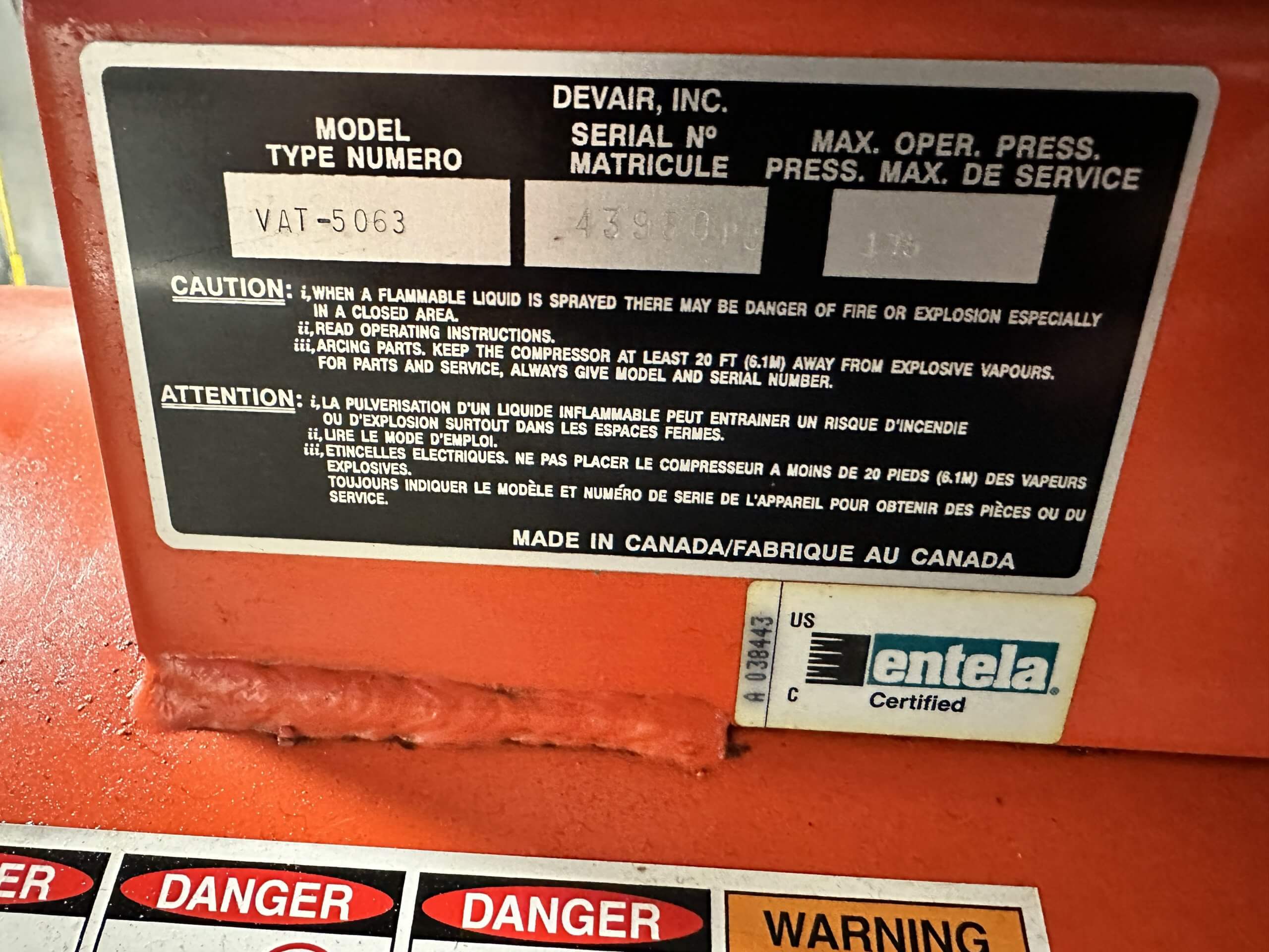 M&M Equipment Corp   >   Equipment List   DEVAIR VAT-5063 Air Compressor