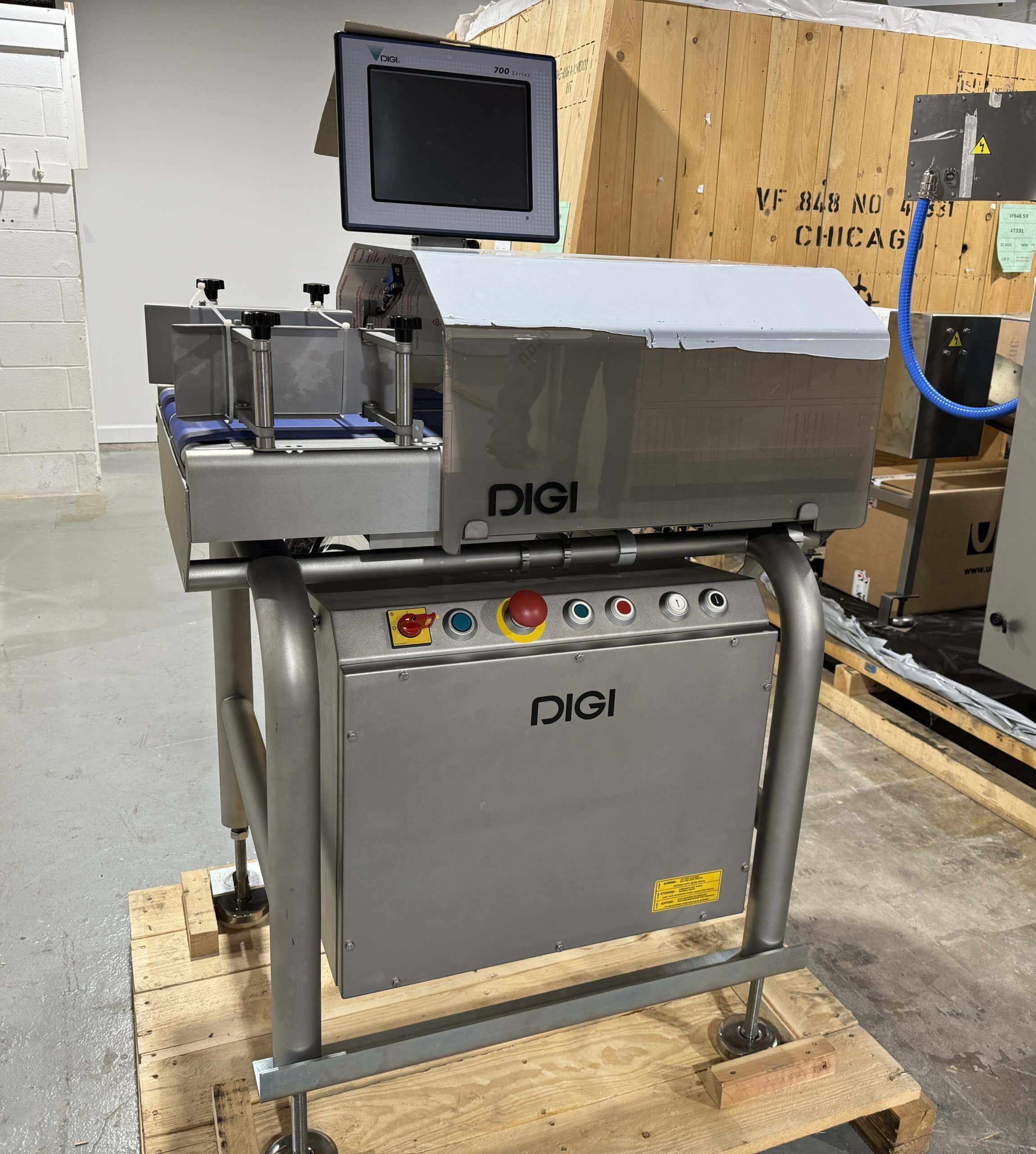 DIGI EUROPE HI700W Weigh Price Labeler. Hi-speed, Speed up to 60 packs per minute, Product Length: 80 to 300mm, Width: 40 to 250mm, Height: 180mm maximum, Label size: width: 30 to 120mm, height: 28 to 150mm, 12.1 color LED display, 110V/1PH/60HZ, 10.9 amps.