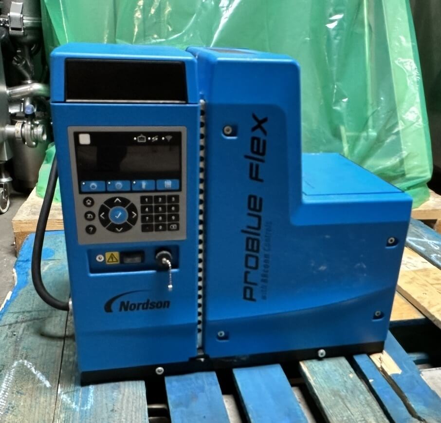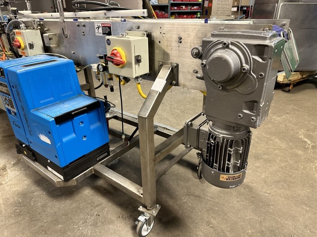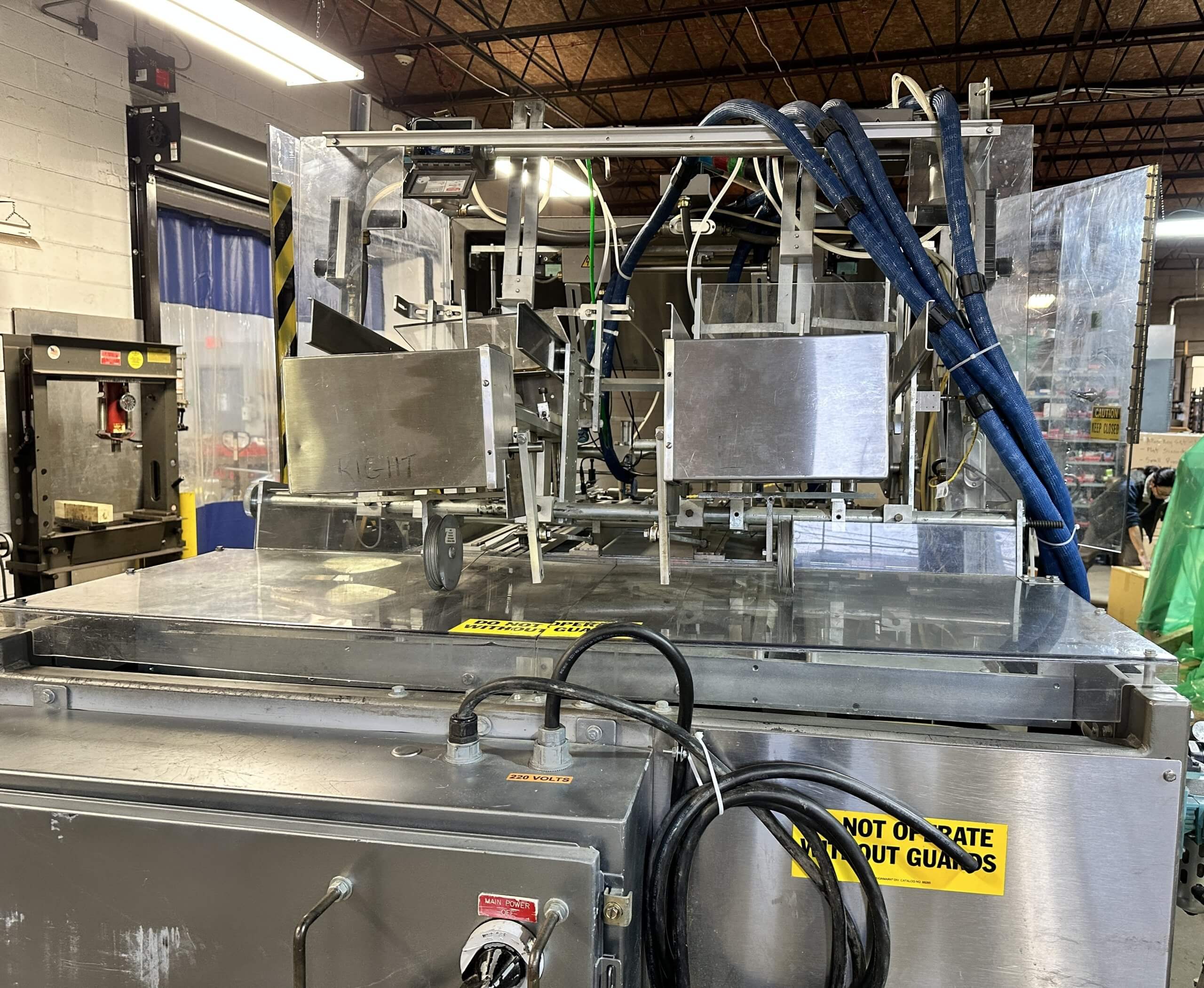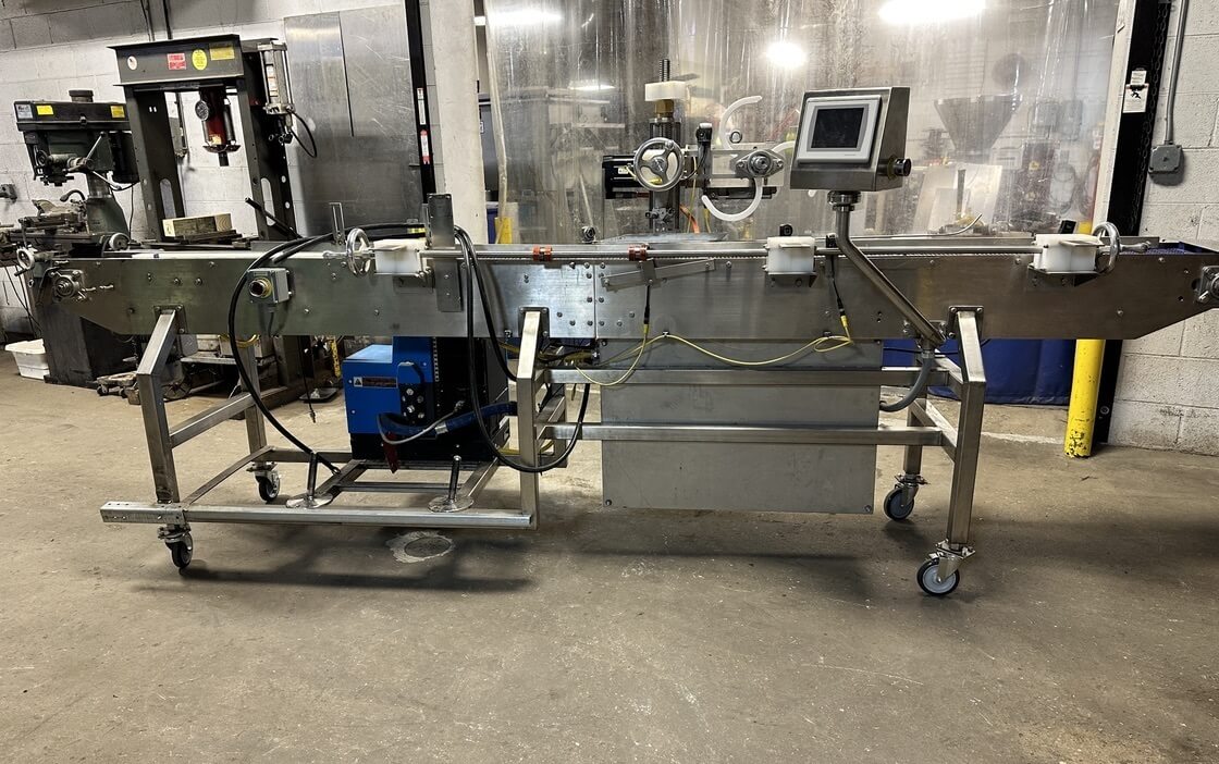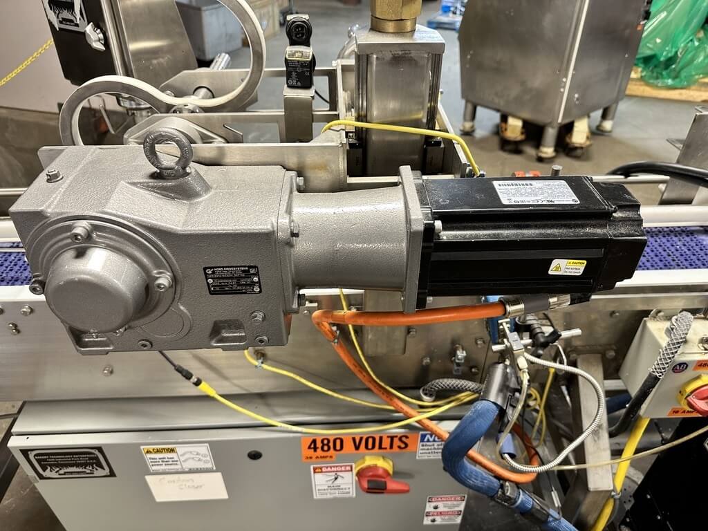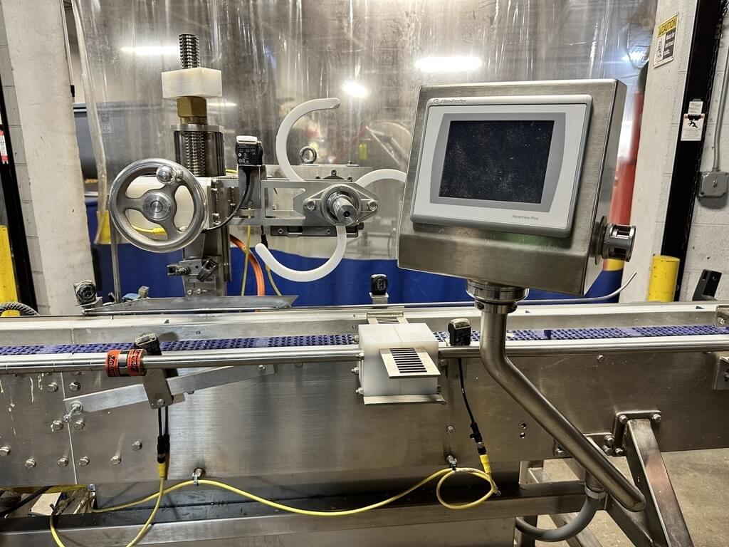 Doboy 752 Dual Head Glue Carton Tray Former. SN’s 96-18484 & 96-18485. Automatic, S/S, dual head, glue, tray former capable of up to 70 cycles per minute (2 trays per cycle). Dual power-feed magazines, 2-cup reciprocating vacuum blank pick & place, adjustable female forming head, Nordson Problue Flex hot melt glue applicator. Controls: LCD display, E-stop, status indicator lights, low blank magazine sensor, production counters and barrier guarding. Includes conveyor carton closer system with a second Nordson Problue hot glue applicator with controls. 480/230V/3PH/60HZ.