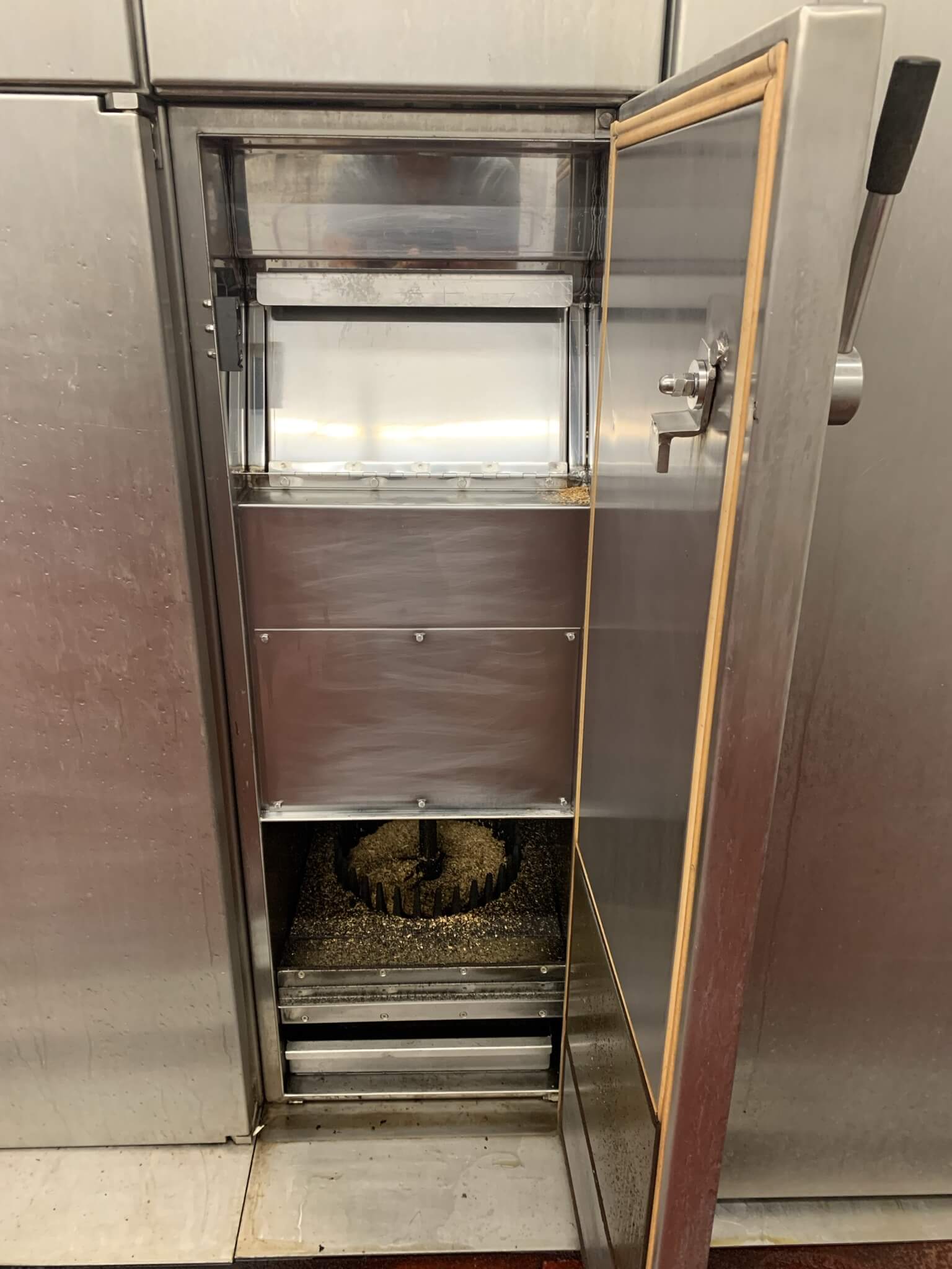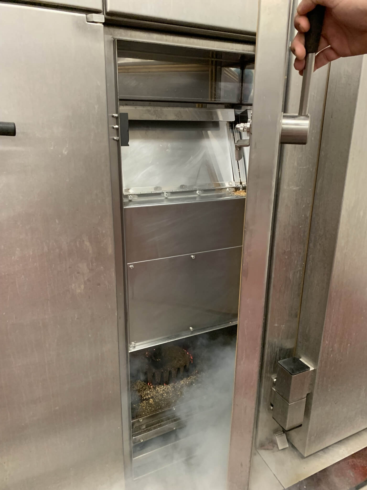 Schroter 4 Truck Smokehouse. Double front loading doors. Bottom center floor drain. ...