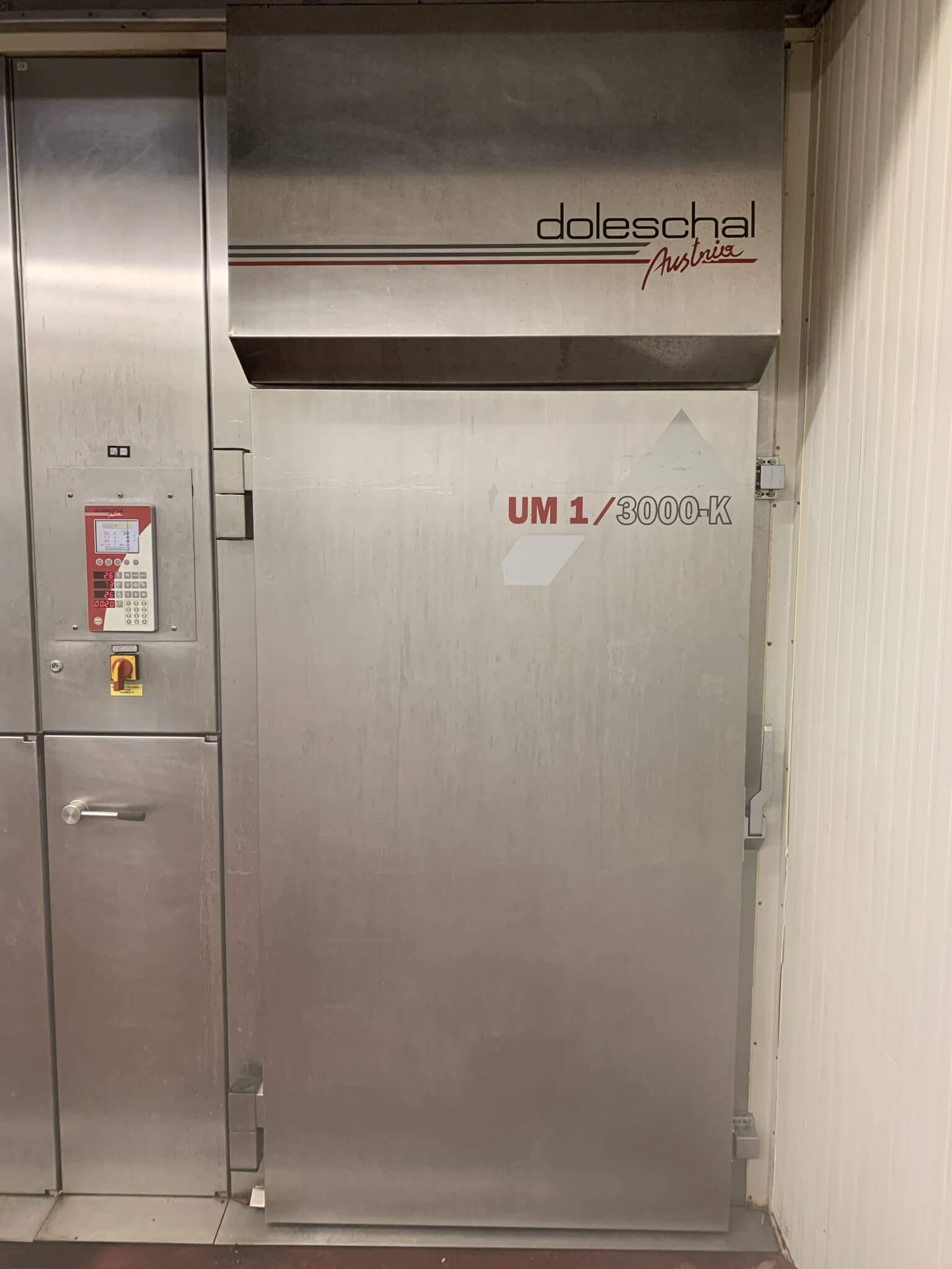 Doleschal UM1/300K Elektro Smokehouse. Equipped with Microprocessor control panel, Wet & Dry bulb function, electric and steam fired, refrigeration capabilities, built-in Smoke producer, all stainless steel construction, 240V3PH/60HZ, 153 Amps.