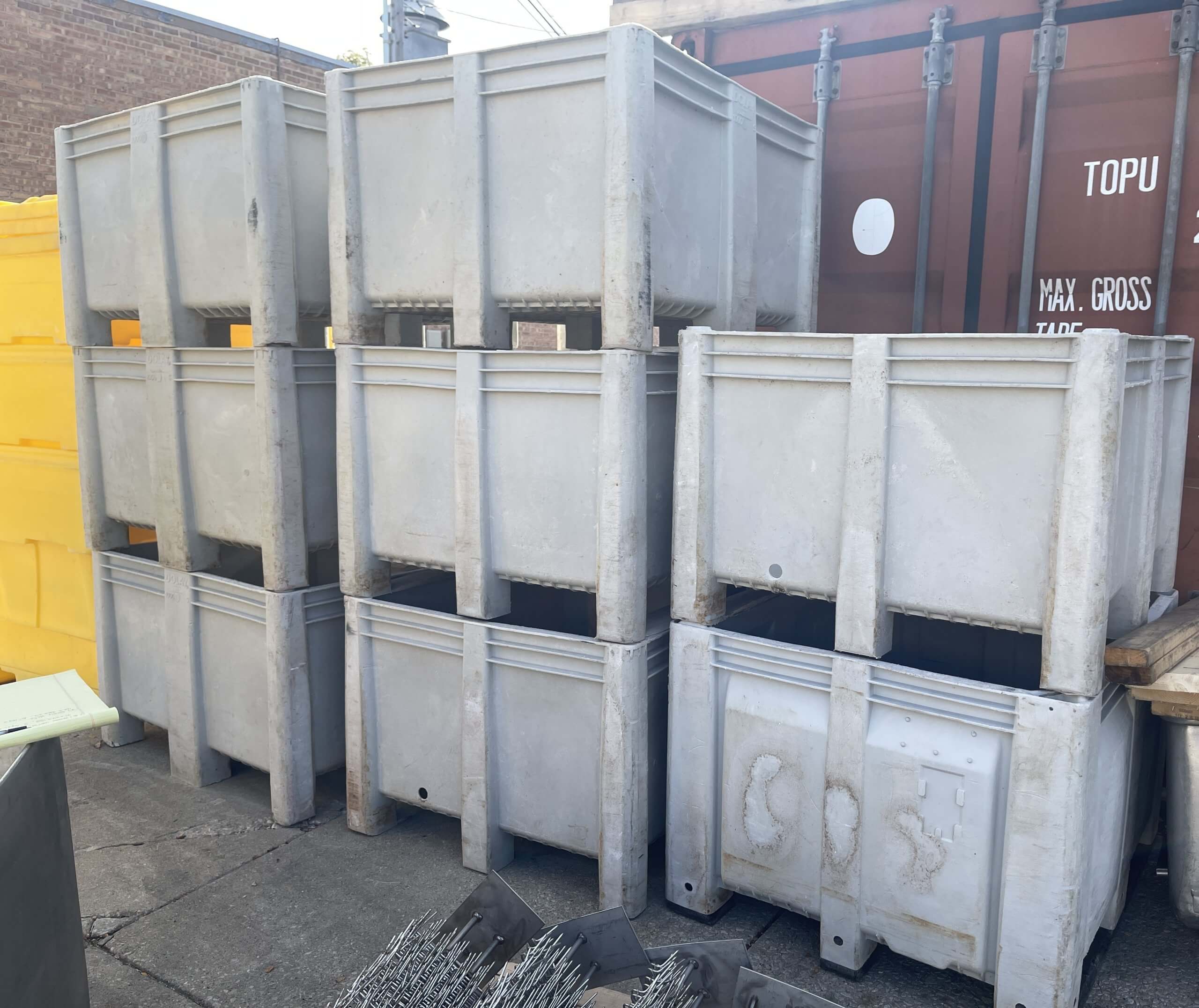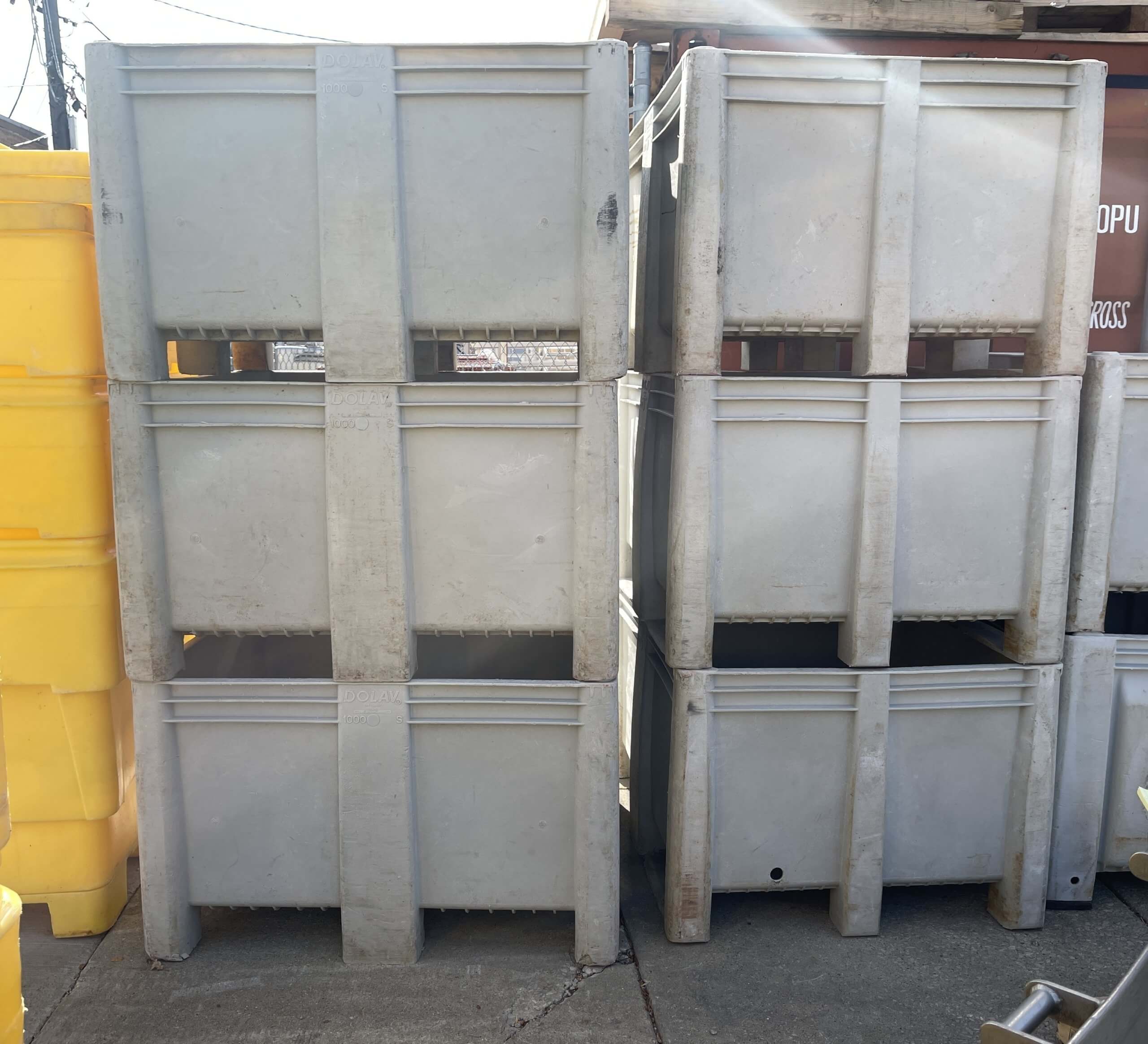 DOLOV Vats. (8) Poly Stackable Curing Vats, 42″ x 36″x 23″ , 6″ legs, 4 way entry, 1-1/2″ corner drain.