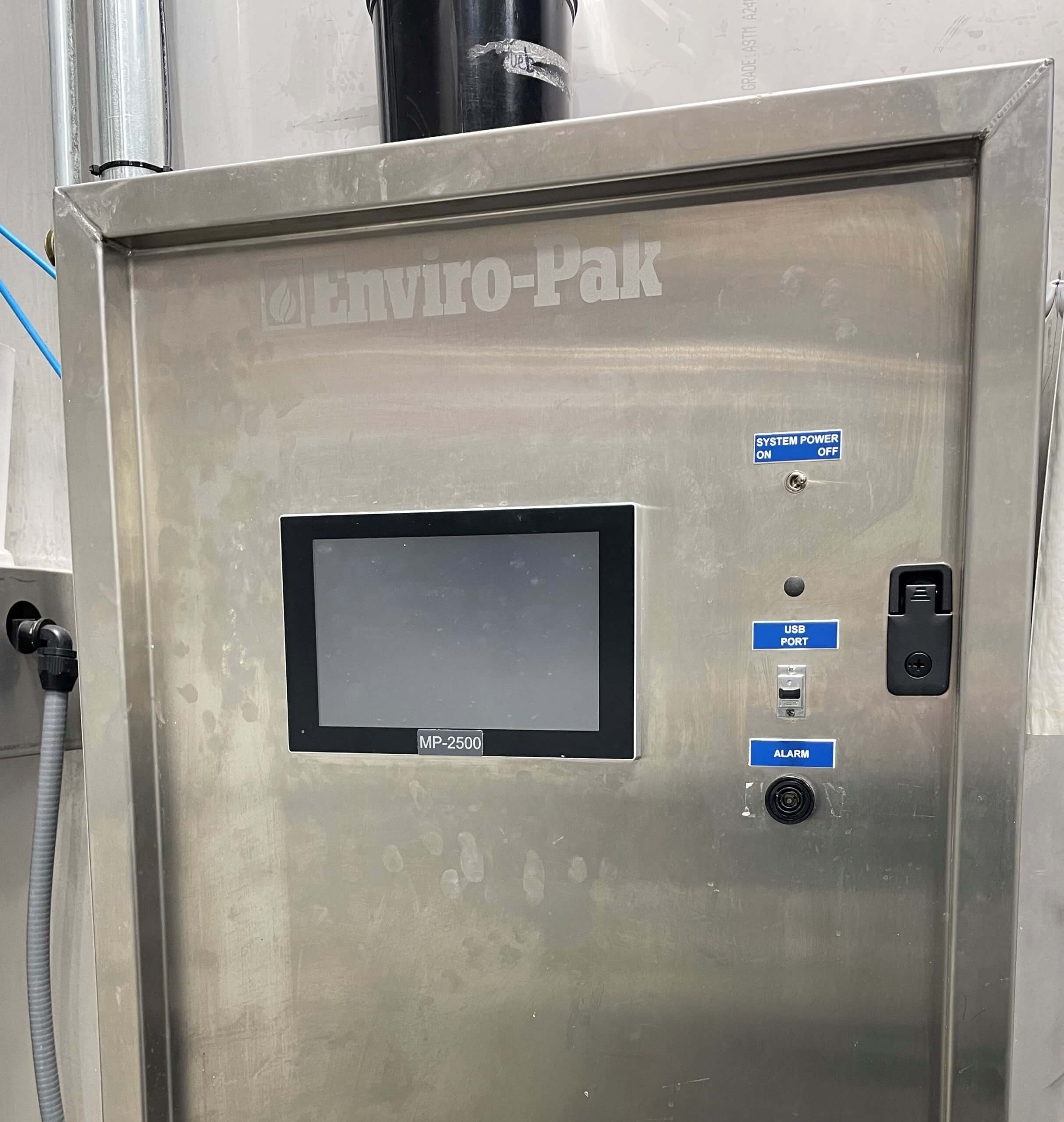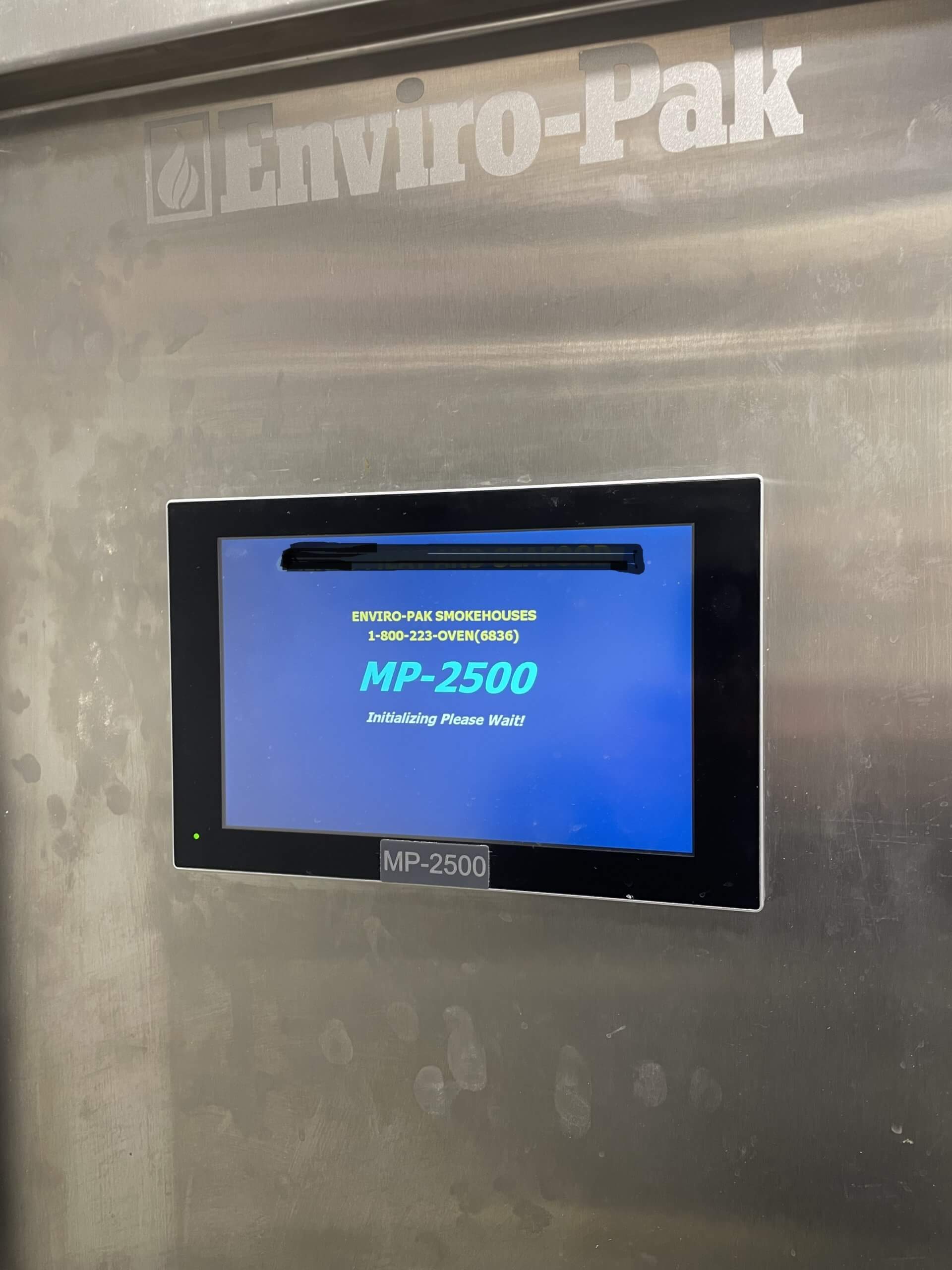 ENVIRO PAK CHU1000E Shelf-Pak Smokehouse. One Truck capacity. Newly installed Enviro Pak MP-2500 processor. Includes (2) 44″ x 45″ x 75″ Smokehouse Trucks with 21 stations each, Enviro Pak Smoke Producer, Horizontal airflow, and alternating damper system. 7.5 hp fan motor, 1971 RPM, /1.9 hp damper motor 971 RPM, 208V/3PH/60Hz, 153 Amps, 45.5 kW. requires cold & hot water supply, 1 GPM @ 40 psi and compressed air 3 SCFM @ 80 PSI.