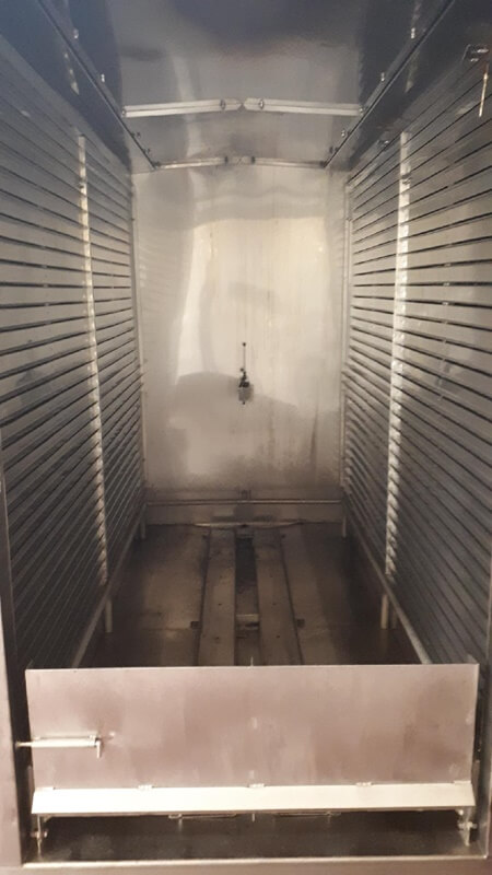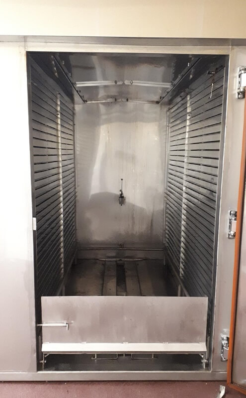 Schroter 4 Truck Smokehouse. Double front loading doors. Bottom center floor drain. ...