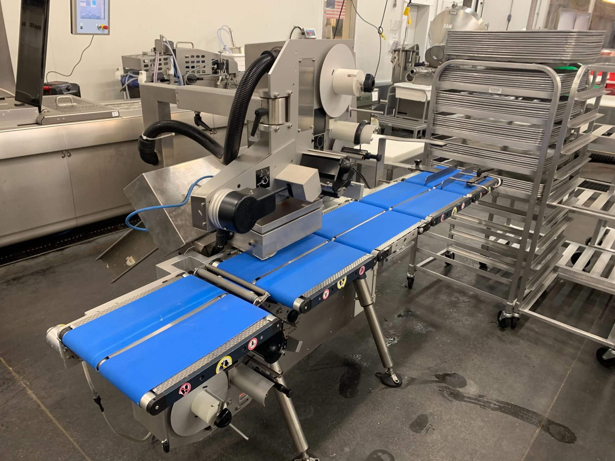 Espera ES 5000 Automated Labeling System. It can be used independently with manual product feed or seamlessly integrated into already production lines with automatic product feed, both of which minimize the amount of space needed for installation.