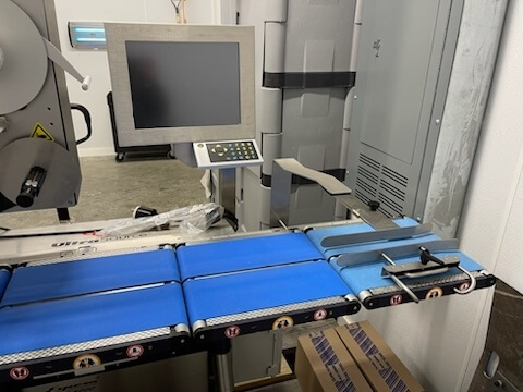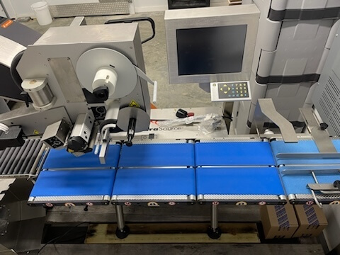 ESPERA ES 5911/873059-114 Automated Labeling System. Can be used independently with manual product feed or seamlessly integrated into already production lines with automatic product feed, both of which minimize the amount of space needed for installation.