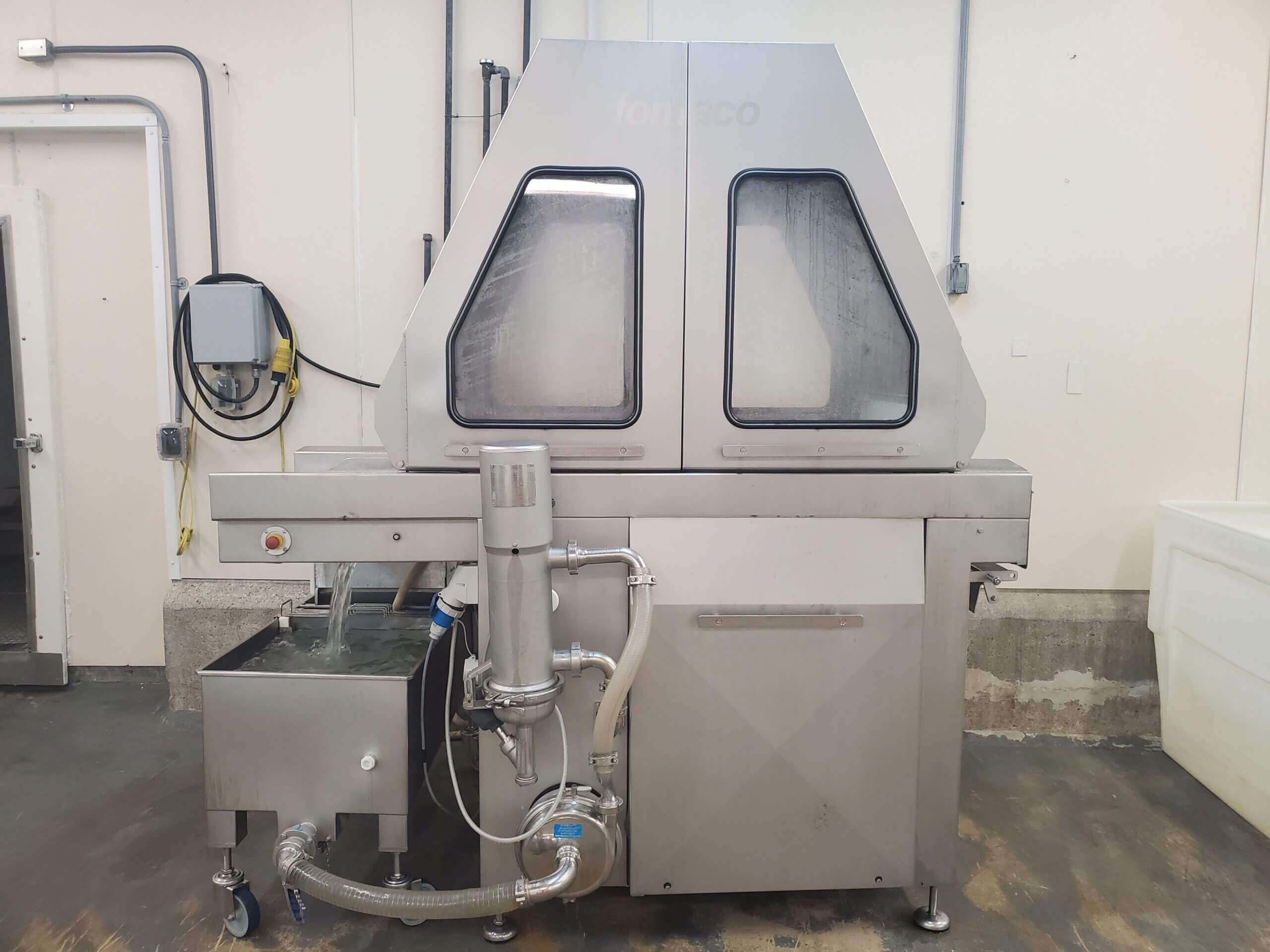 Fomaco 20/40 Pickle Injector. 10″ wide stainless steel conveyor belt. Set up w...