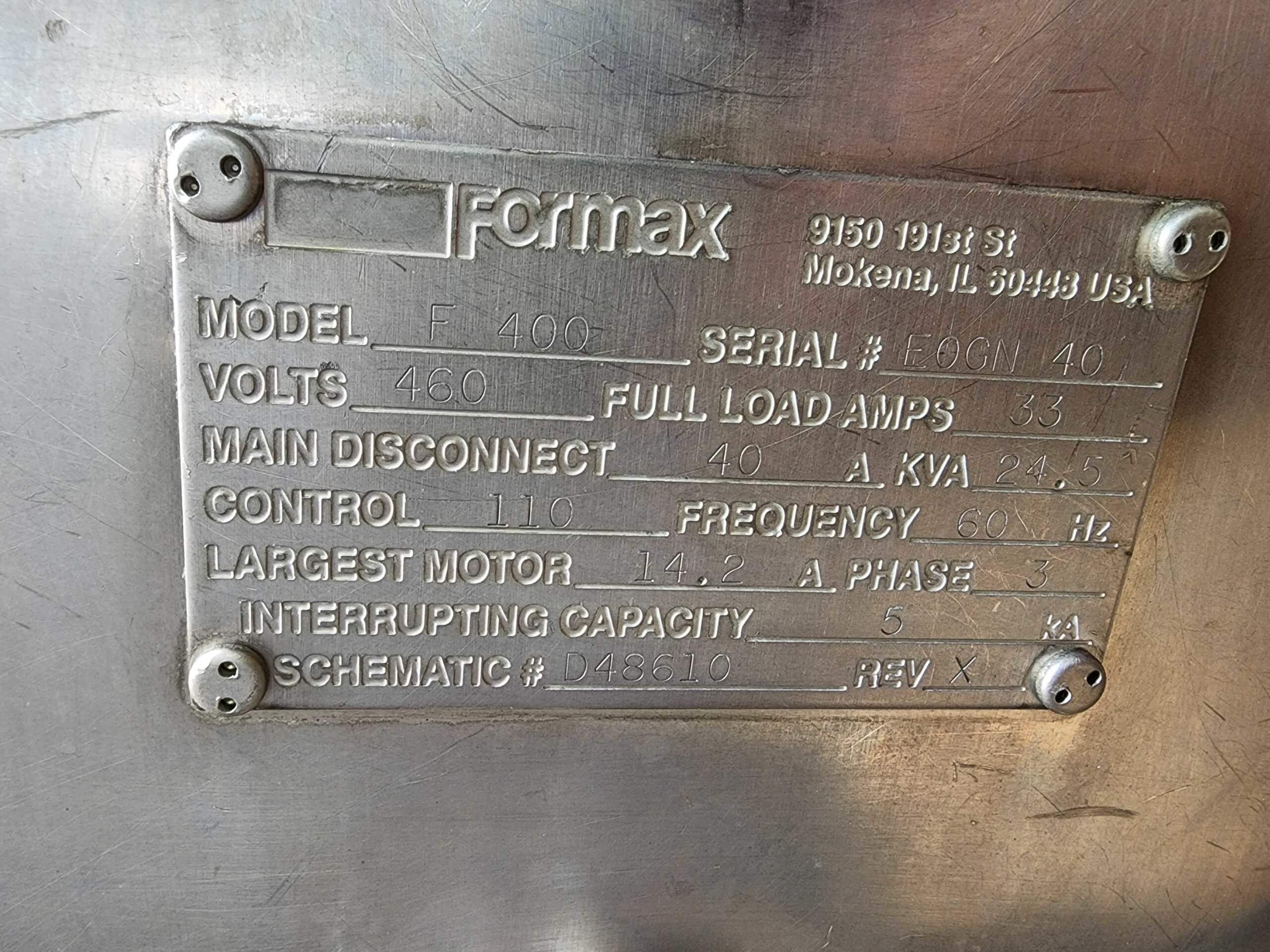 FORMAX F 400 FORMING MACHINE. SN 12093, 575 volts, 3 phase, 60 Hz. This Machine will...