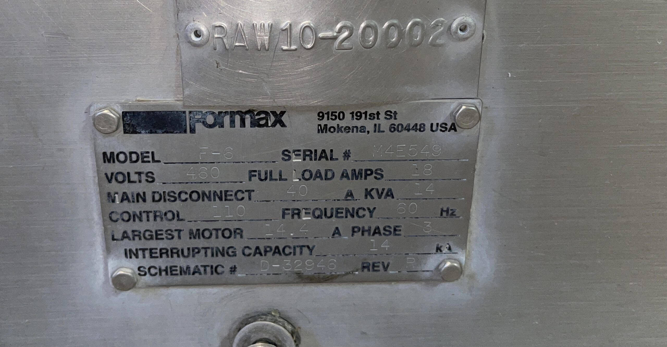 Formax F 6 Former. 6″ wide usable forming width, SN: R6404, 10 hp self-contain...